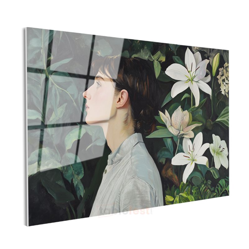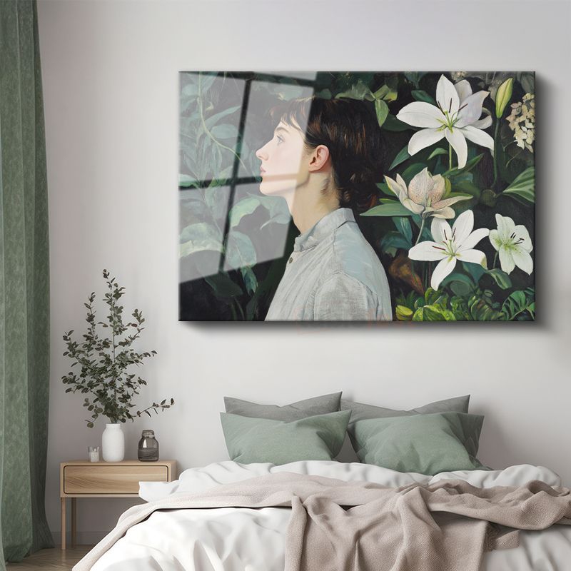 Serge Marshennikov - Zambaklar ve Kadın Cam Tablo