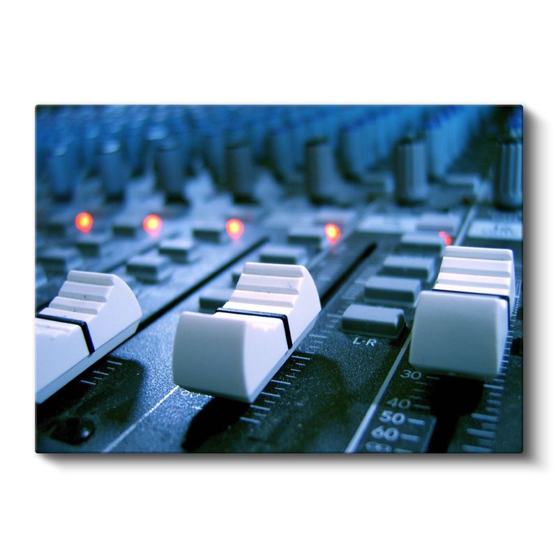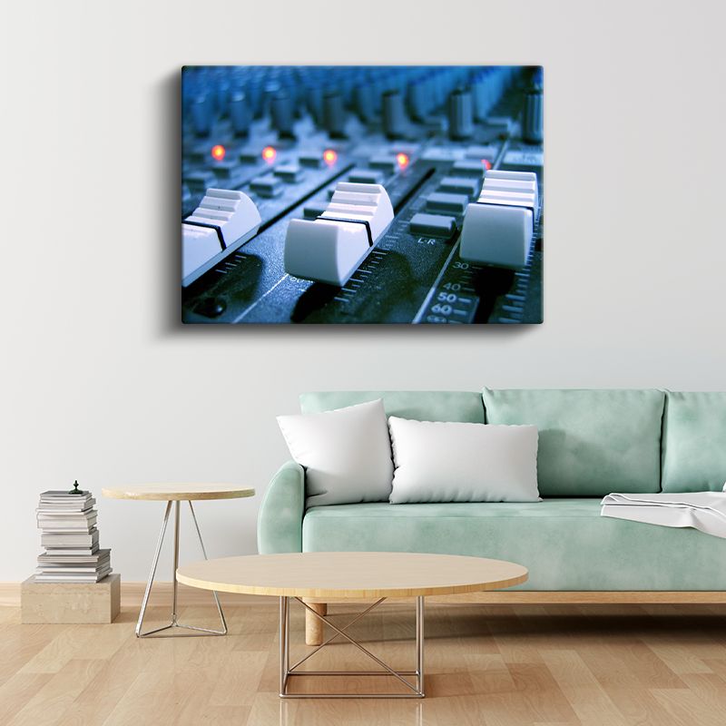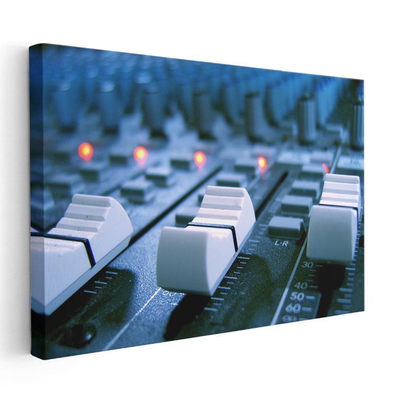 Ses Mikseri - Mavi Tonlarda Müzik Stüdyosu Kanvas Tablo