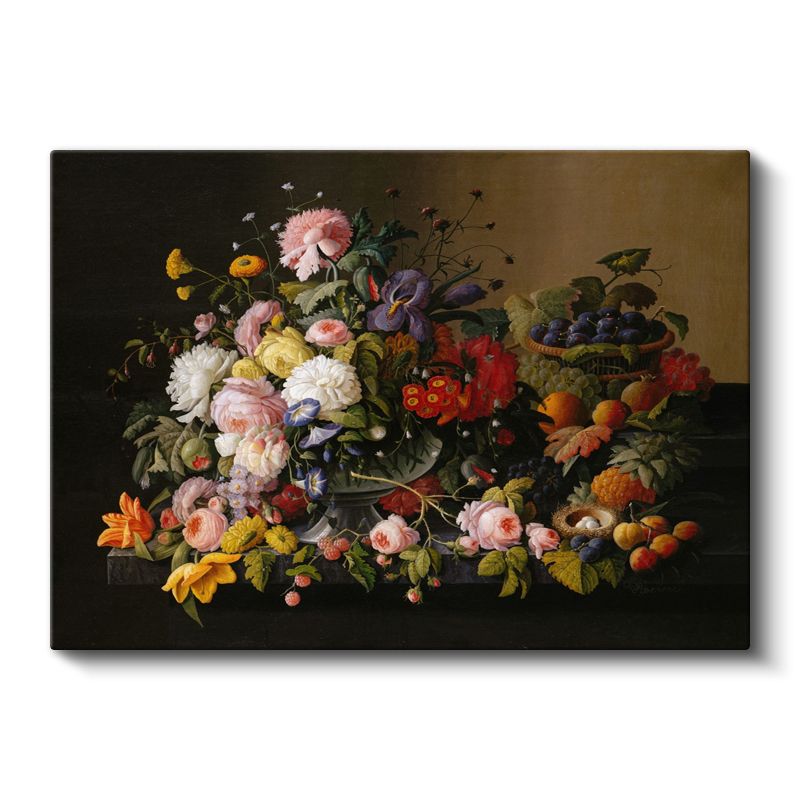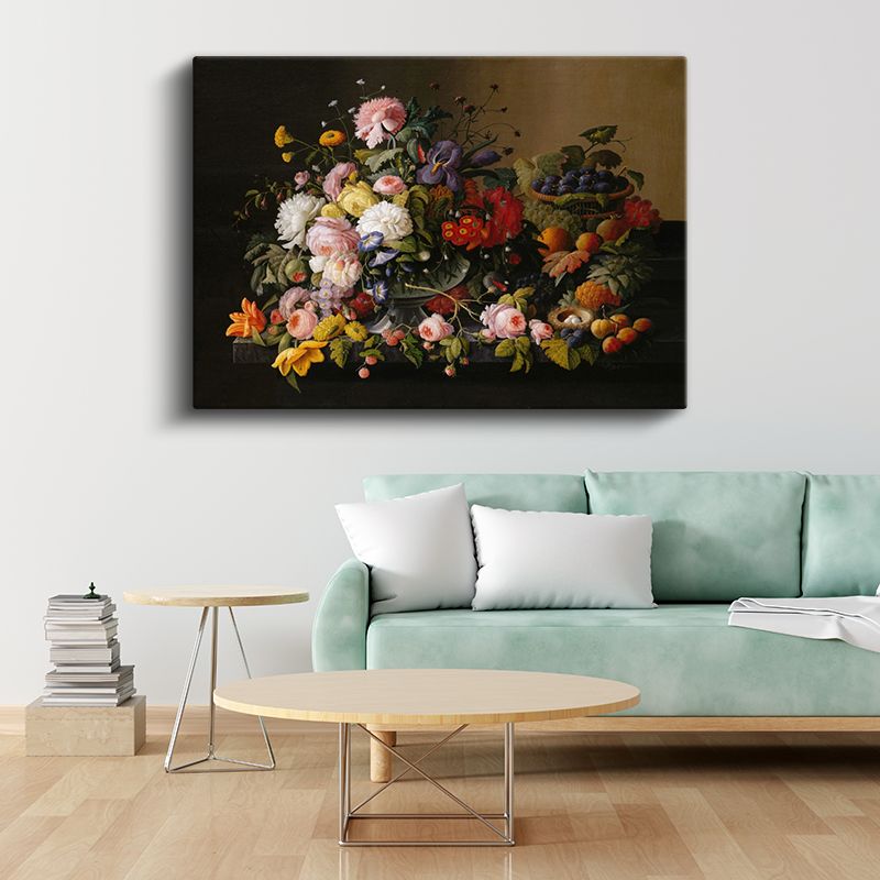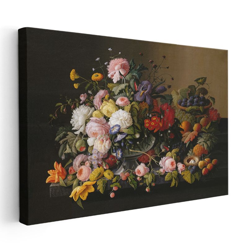 Severin Roesen - Çiçekler ve Meyveler Aranjmanı Kanvas Tablo