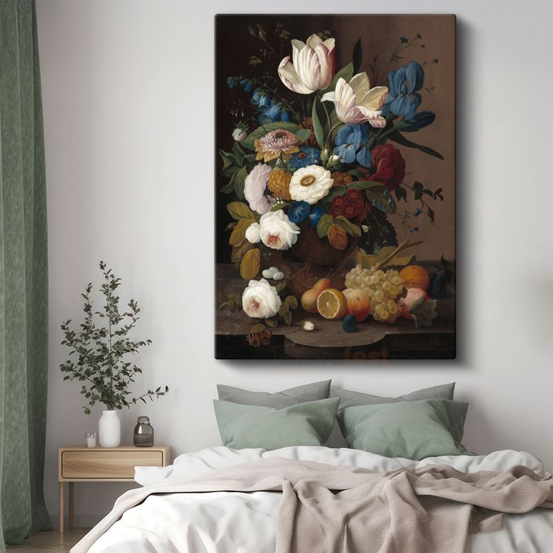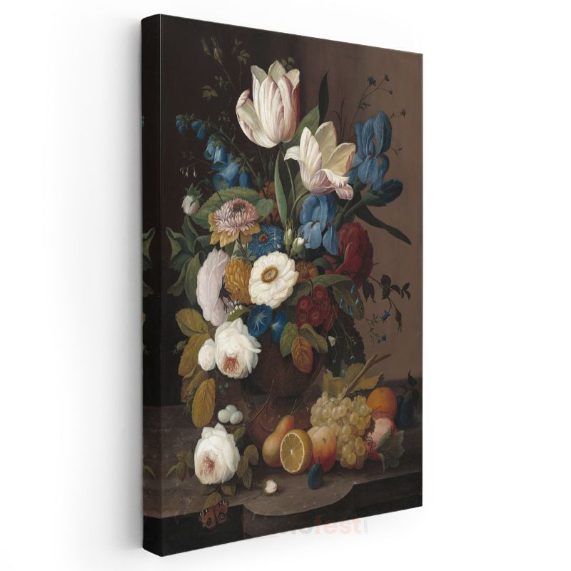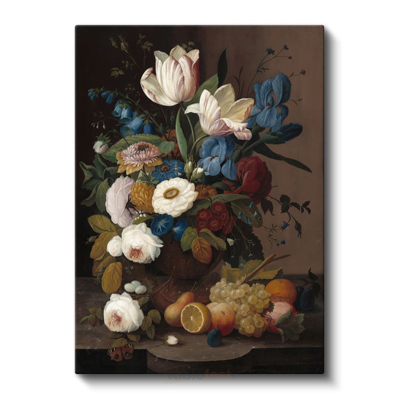 Severin Roesen - Çiçekler ve Meyveler Kanvas Tablo