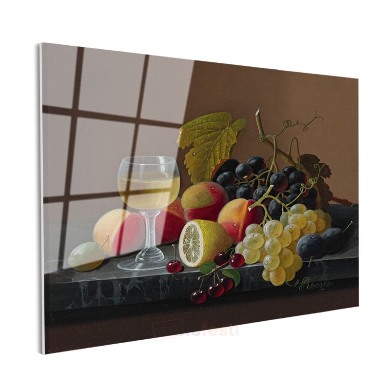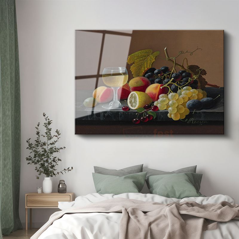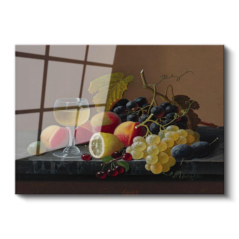 Severin Roesen - Şarap Kadehi ve Meyveler Cam Tablo