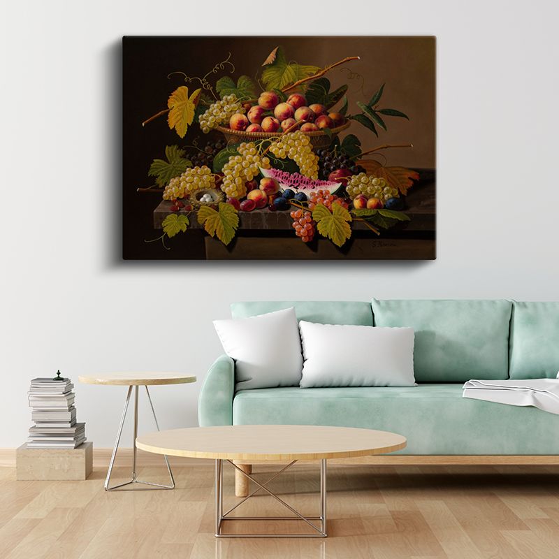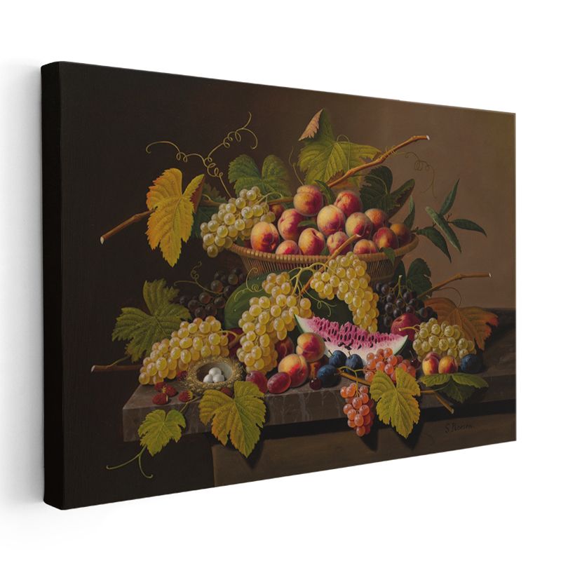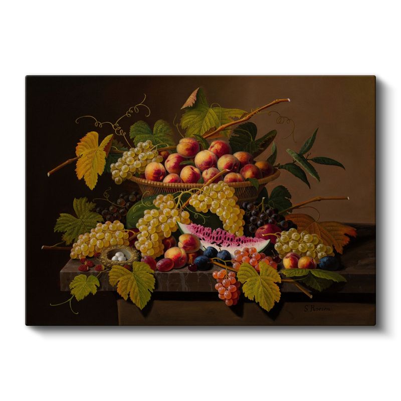 Severin Roesen - Sepette Meyveler Natürmortu Kanvas Tablo