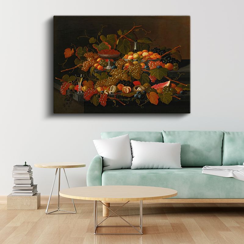 Severin Roesen - Sonbahar Meyveleri Natürmortu Kanvas Tablo
