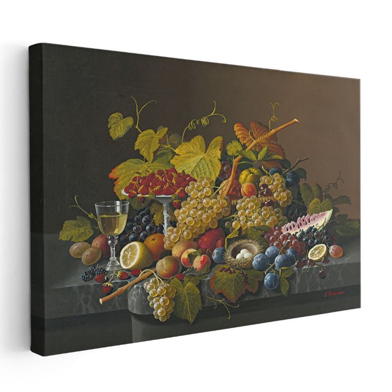 Severin Roesen - Zengin Meyve Kompozisyonu Kanvas Tablo