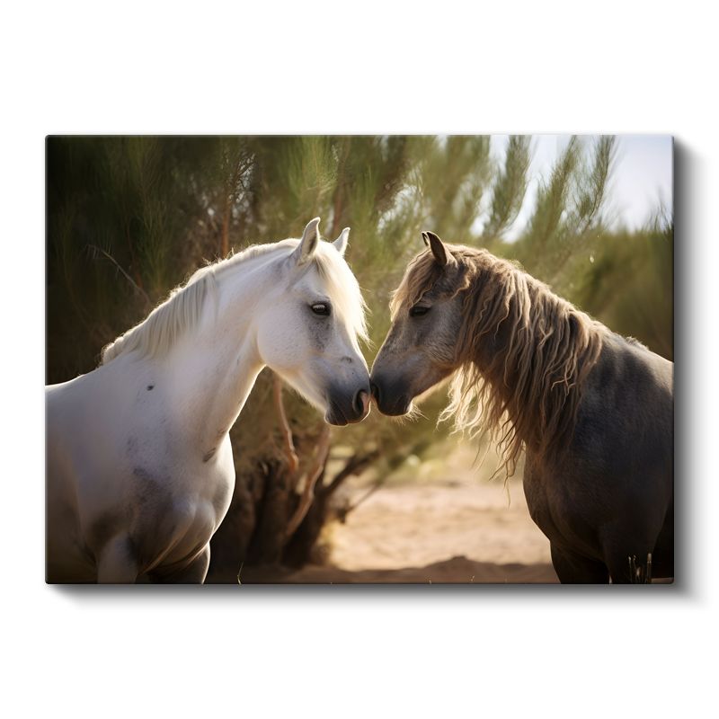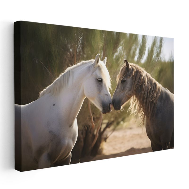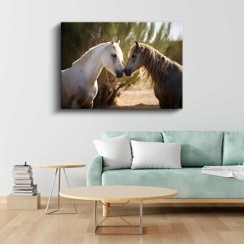 Sevgi Dolu Atlar - Burun Buruna Romantik Anı Yakalayan Kanvas Tablo