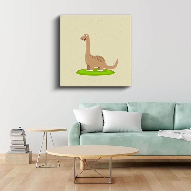 Sevimli Dinozor - Yeşil Çimenlerde Dostumuz Kanvas Tablo