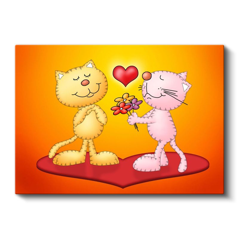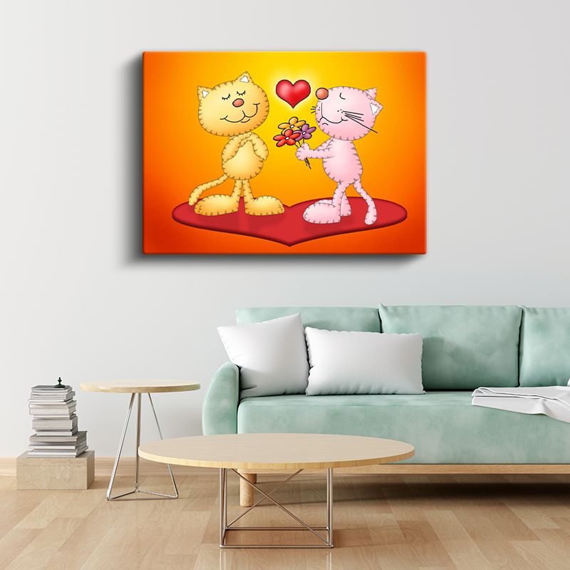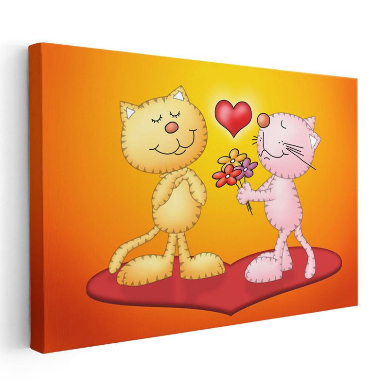 Sevimli Kediler - Aşk Temalı Dekoratif Kanvas Tablo