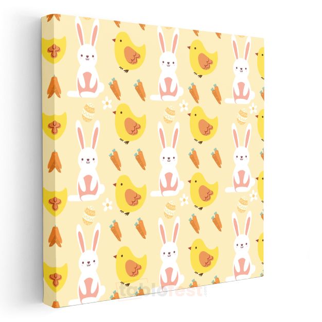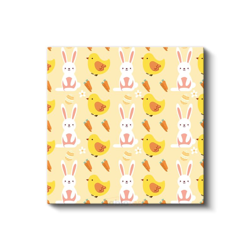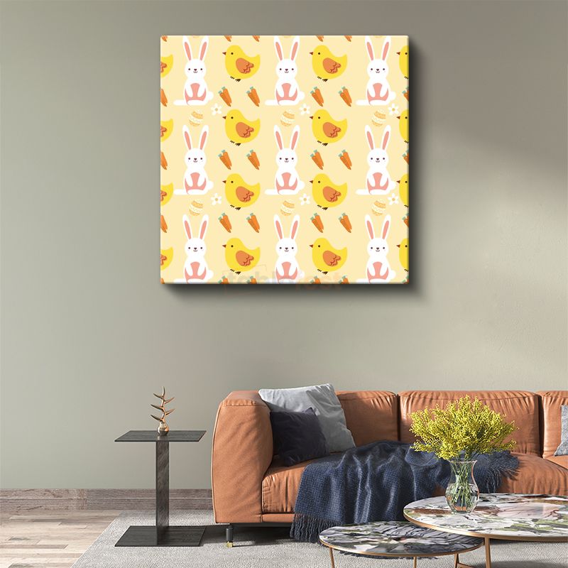 Sevimli Tavşan Desen - Pastel Bahar Temalı Kanvas Tablo