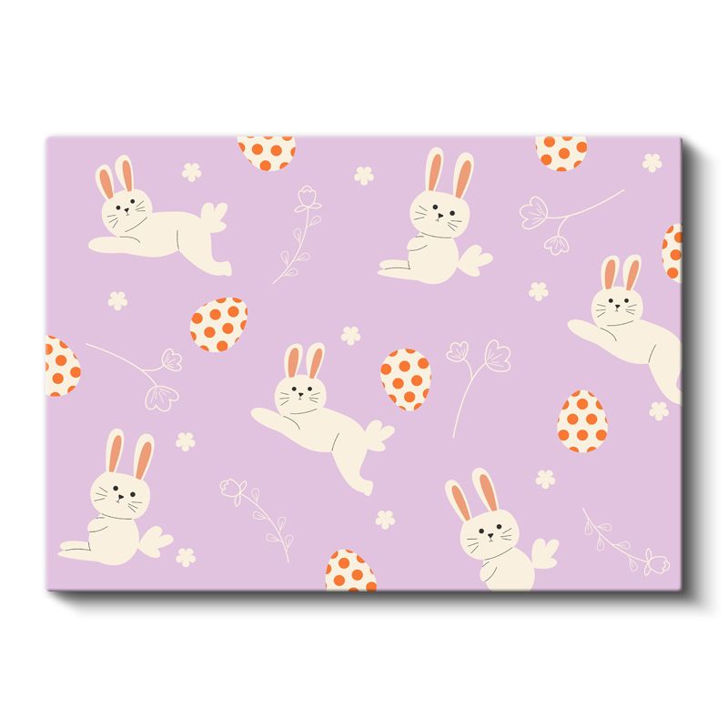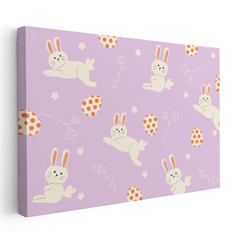 Sevimli Tavşanlar - Mor Zeminde Çiçekli Desen Kanvas Tablo