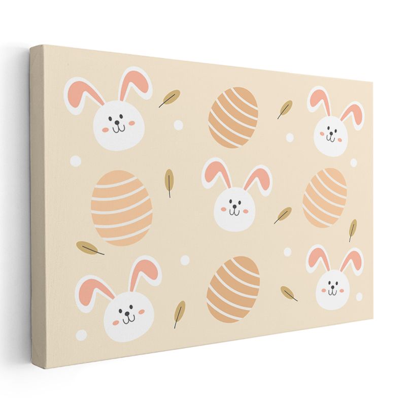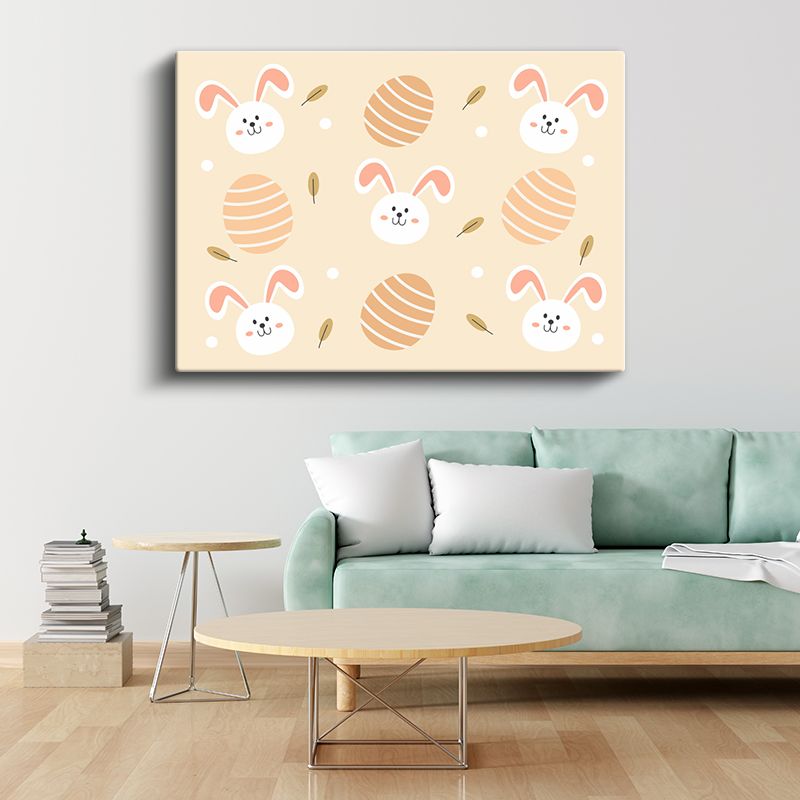 Sevimli Tavşanlar - Pastel Tonlarda Şirin İllüstrasyon Kanvas Tablo