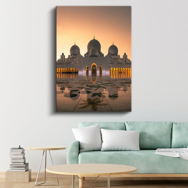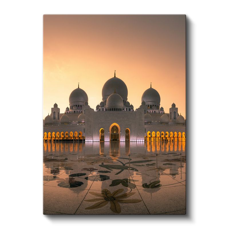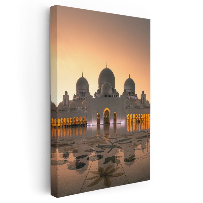 Şeyh Zayed Camii - Altın Işıkta Beyaz Kubbeler Kanvas Tablo