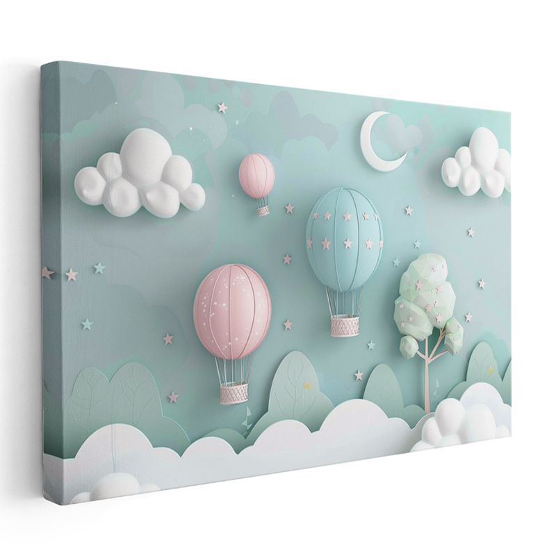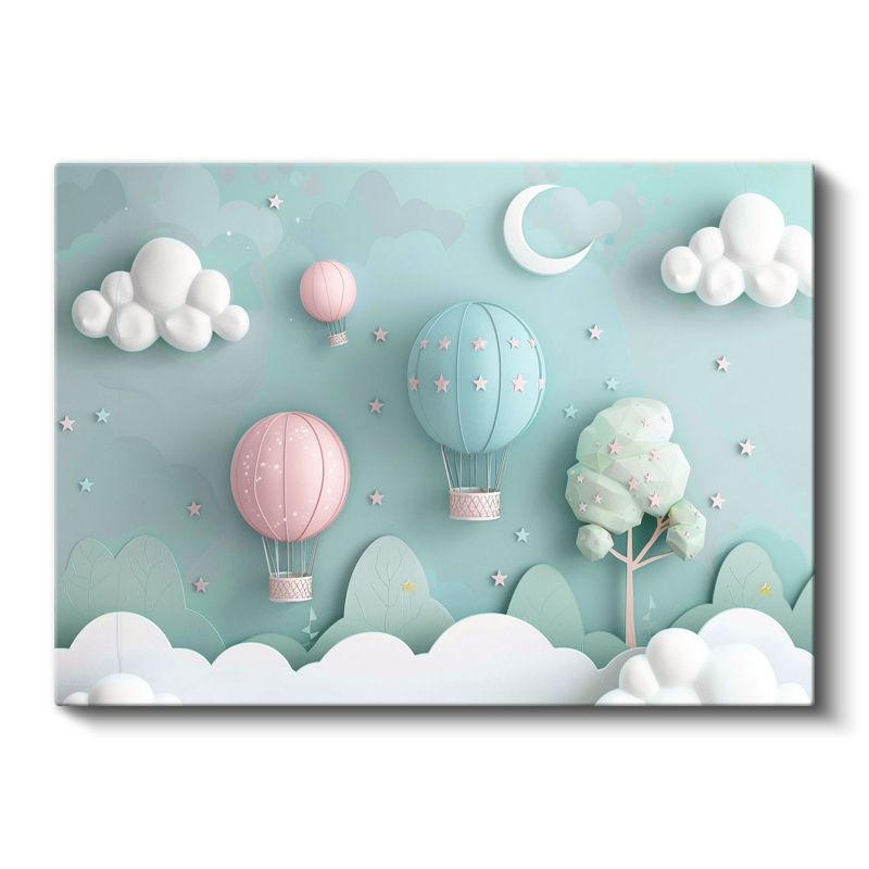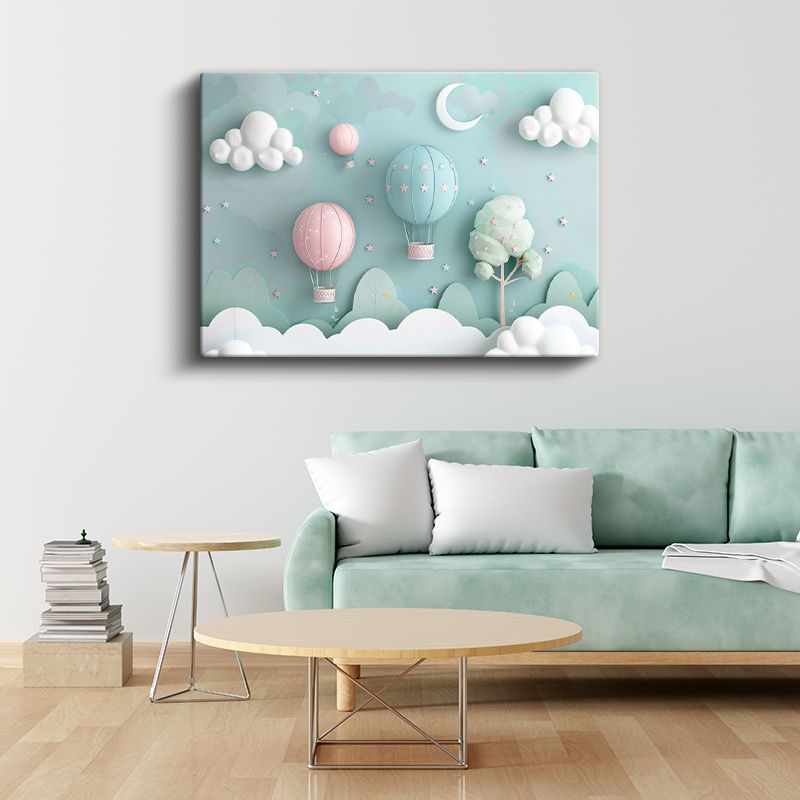 Sıcak Hava Balonları - D Bulutlu Gökyüzü Kanvas Tablo