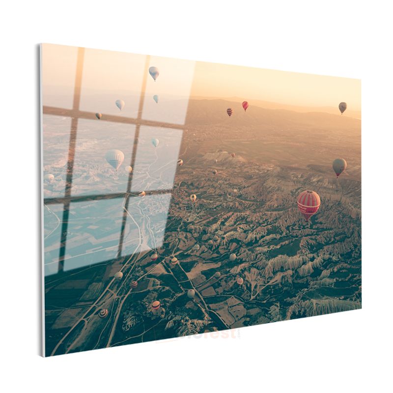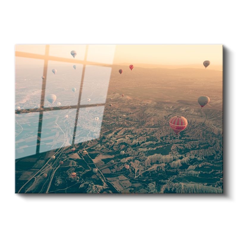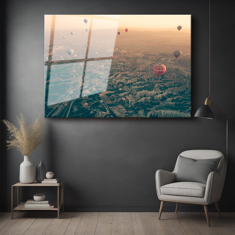 Sıcak Hava Balonları - Gökyüzünden Vadilerin Büyüleyici Manzarası Cam Tablo