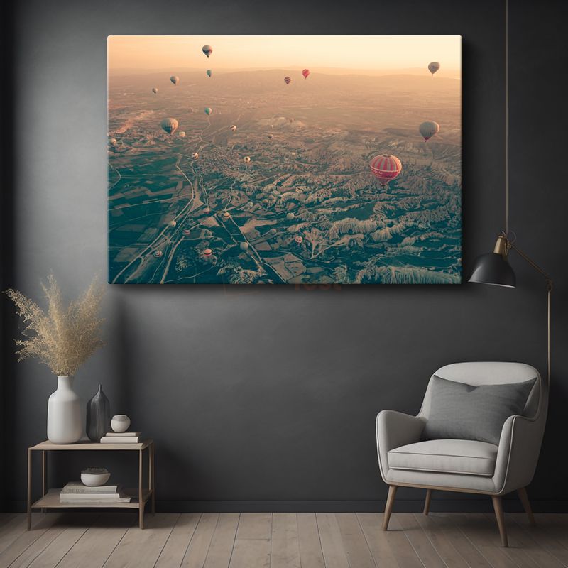 Sıcak Hava Balonları - Gökyüzünden Vadilerin Büyüleyici Manzarası Kanvas Tablo