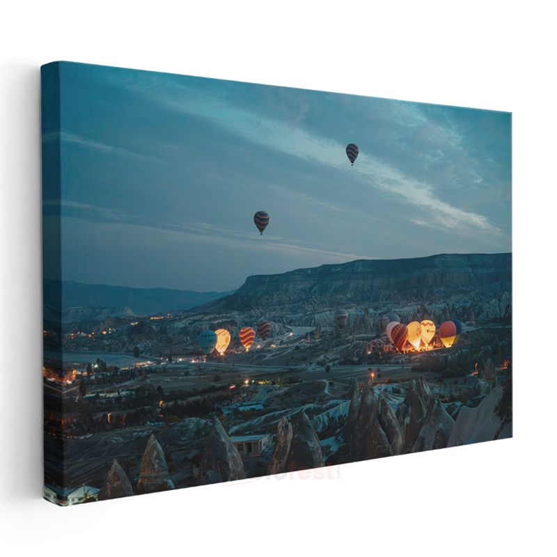 Sıcak Hava Balonları - Kapadokya Vadisi Gece Manzarası Kanvas Tablo