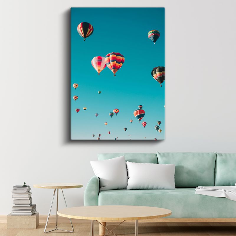 Sıcak Hava Balonları - Turkuaz Gökyüzünde Renkli Festival Kanvas Tablo