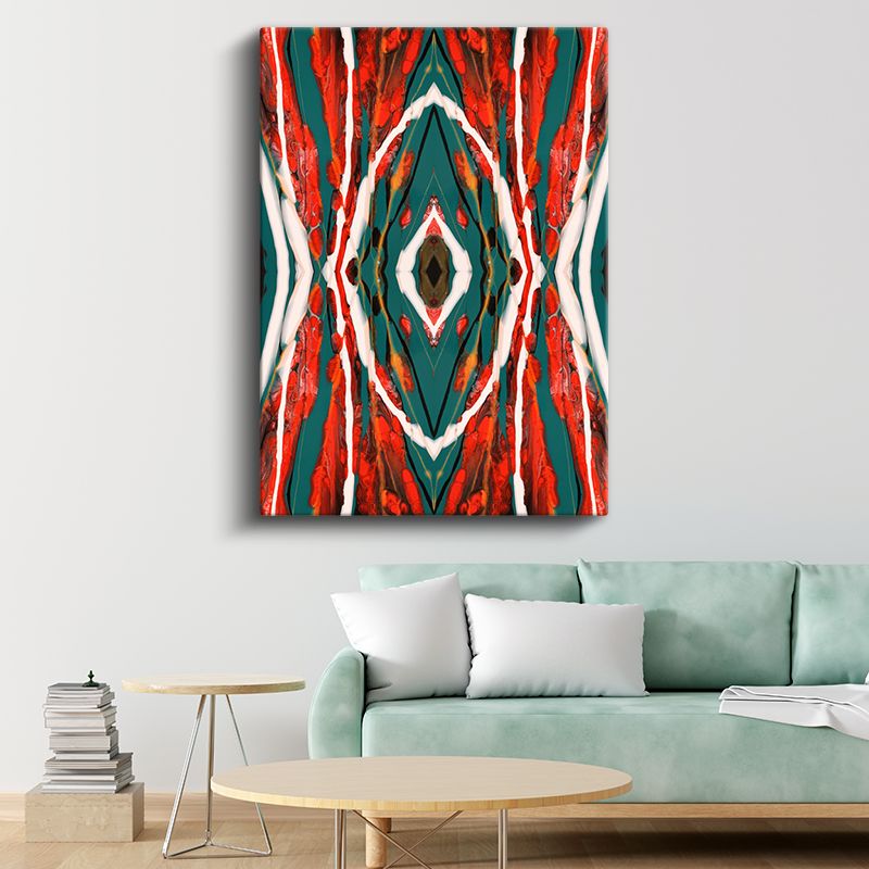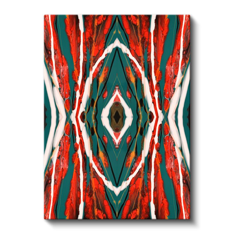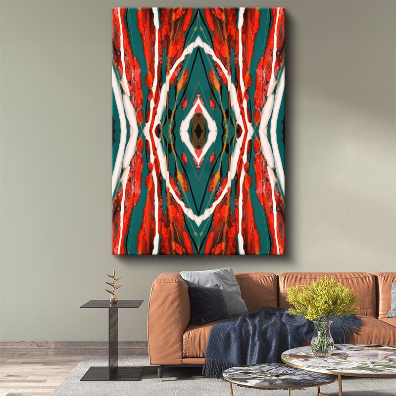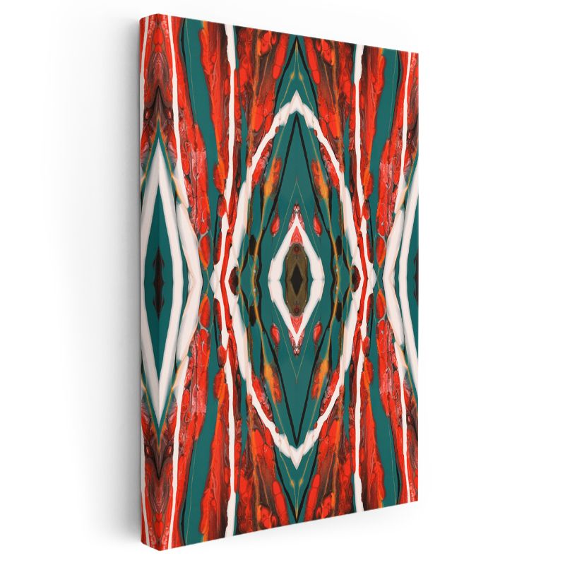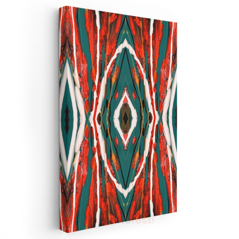 Simetrik Akış - Kırmızı Turkuaz Desenli Kanvas Tablo