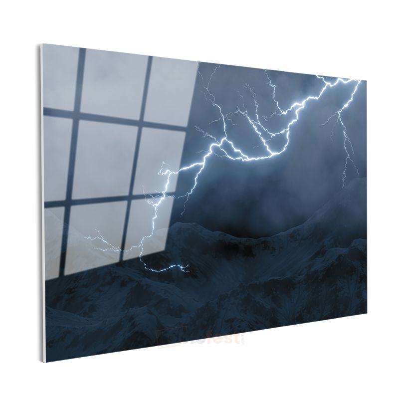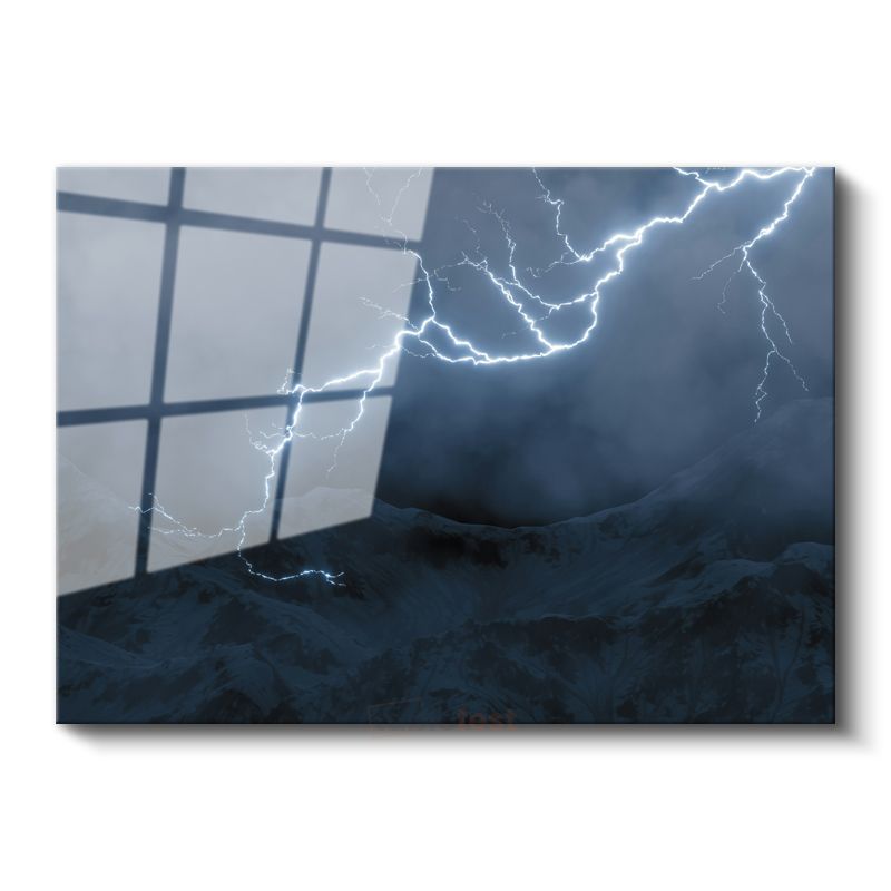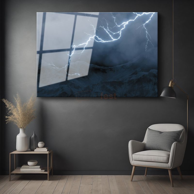 Şimşek - Dağların Üzerinde Fırtına Cam Tablo