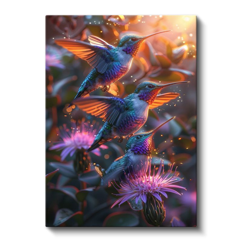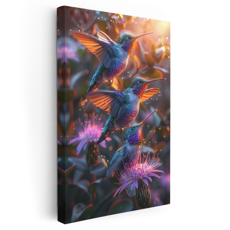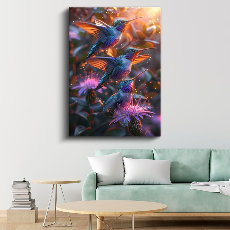 Sinek Kuşları - Çiçekler Arasında Renkli Kanatlar Kanvas Tablo