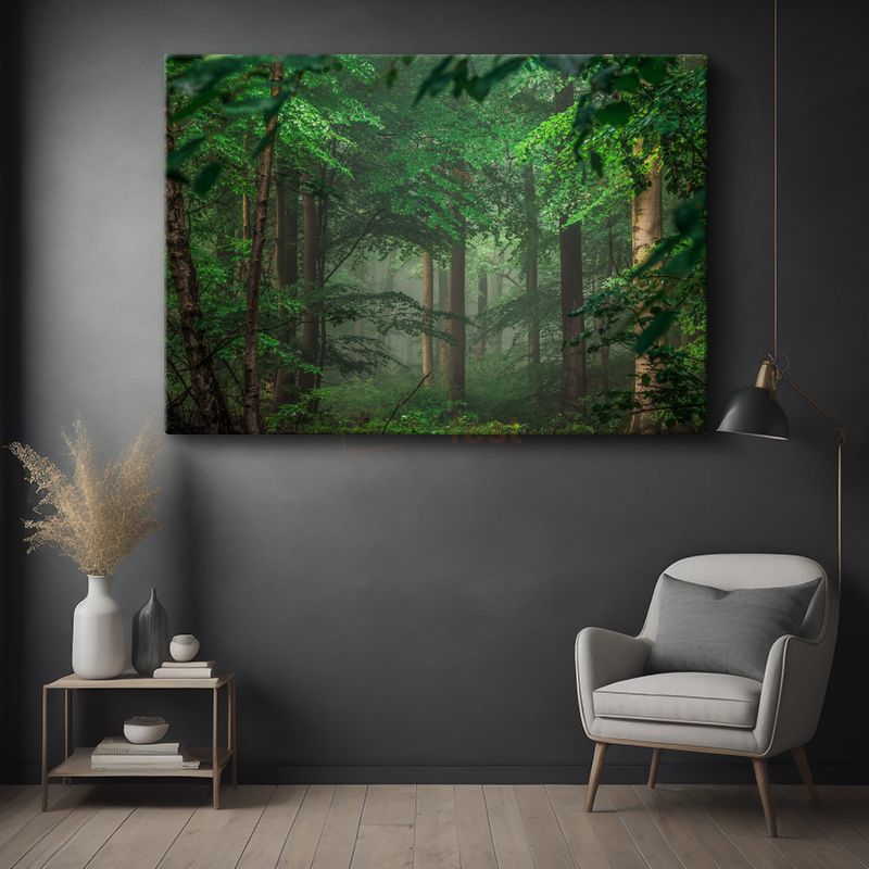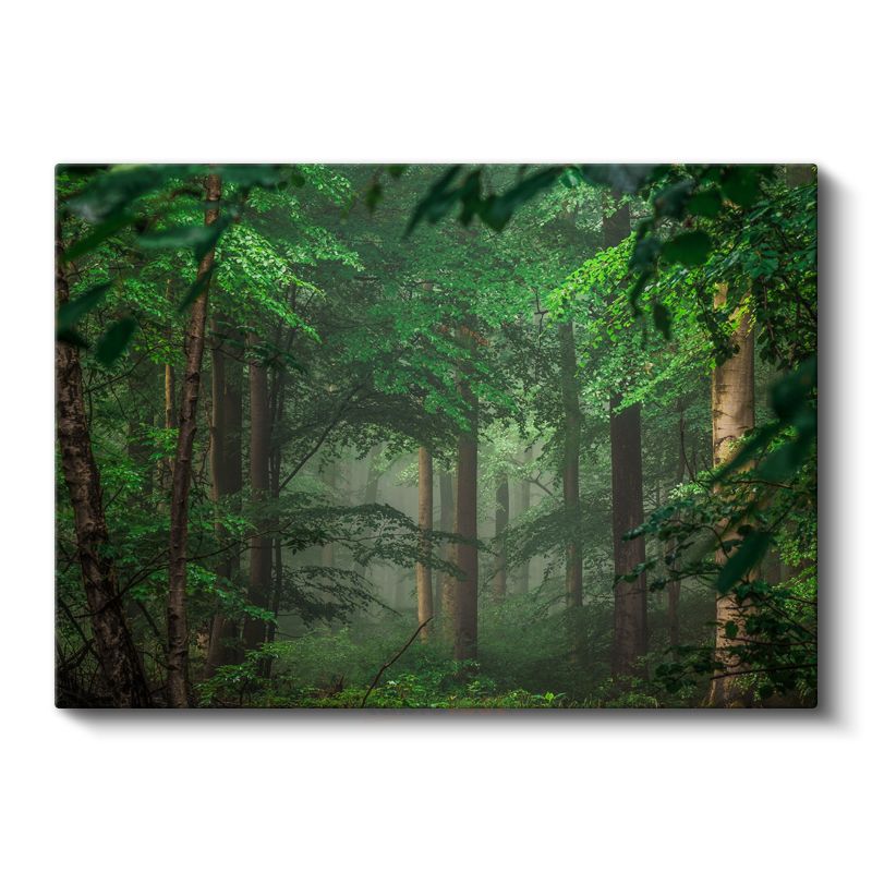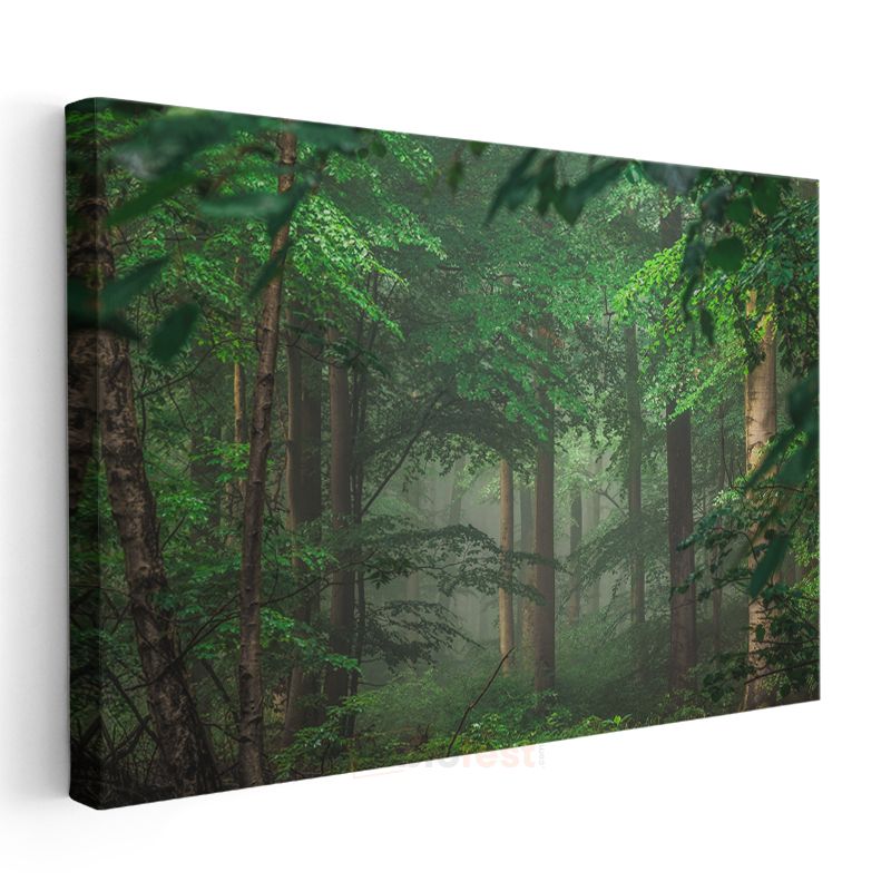 Sis Ormanı - Yeşil Yapraklar Arasında Işık Huzmeleri Kanvas Tablo