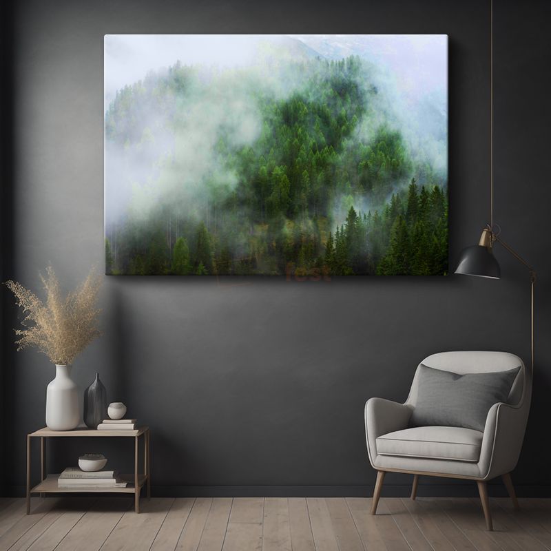 Sisli Dağlar - Çam Ormanı Manzarası Kanvas Tablo