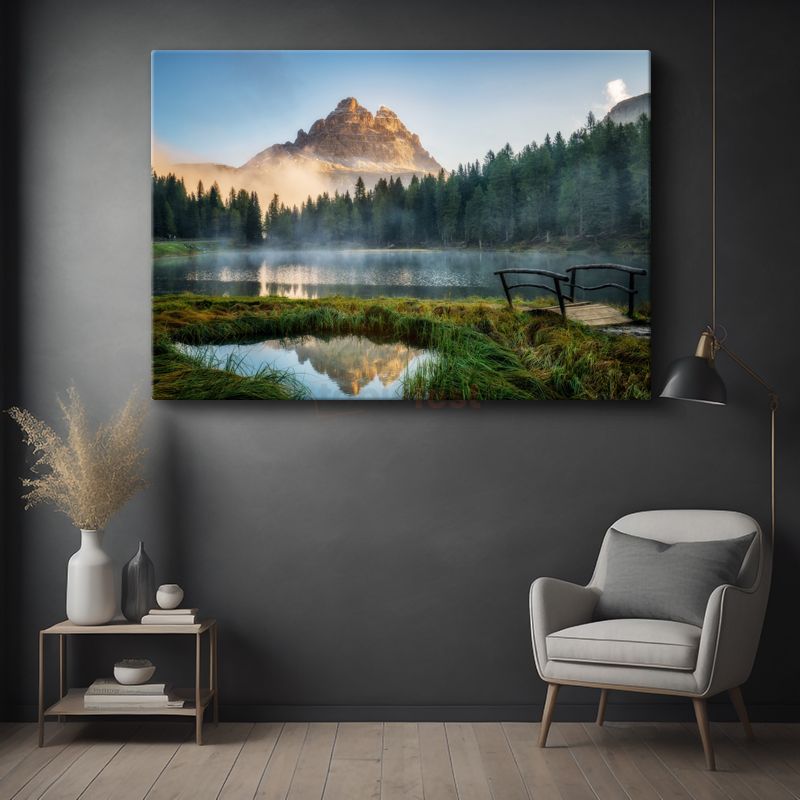 Sisli Göl - Dağ Eteklerinde Huzur Veren Doğa Manzarası Kanvas Tablo