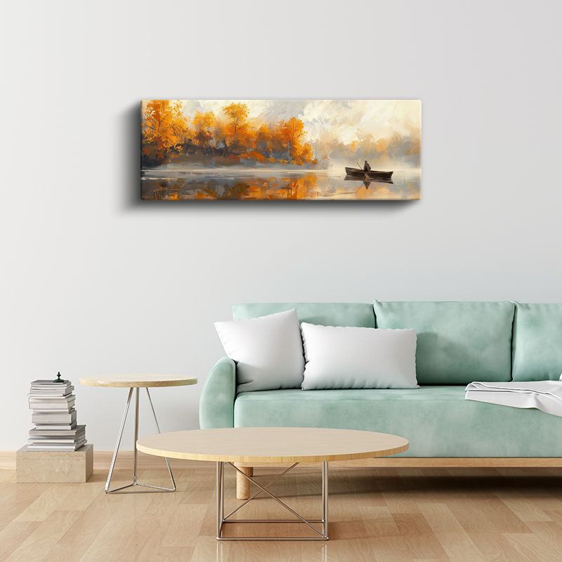 Sisli Göl - Sonbahar Renklerinde Huzurlu Kayık Yolculuğu Kanvas Tablo