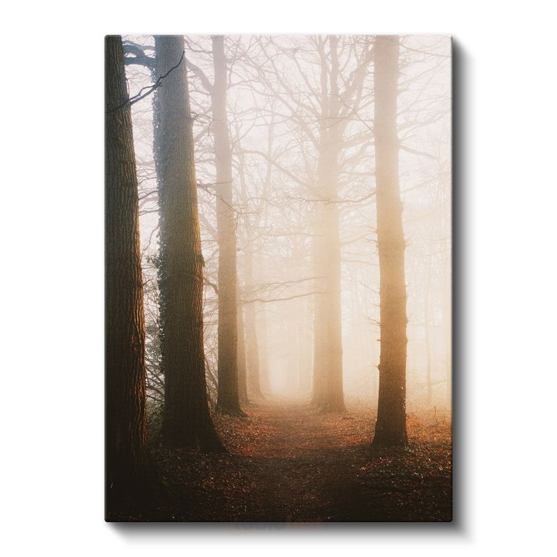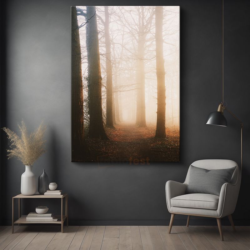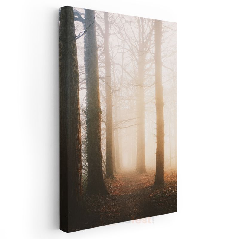 Sisli Orman - Ağaçlar Arasında Altın Işık Kanvas Tablo