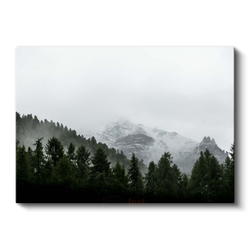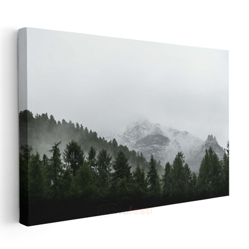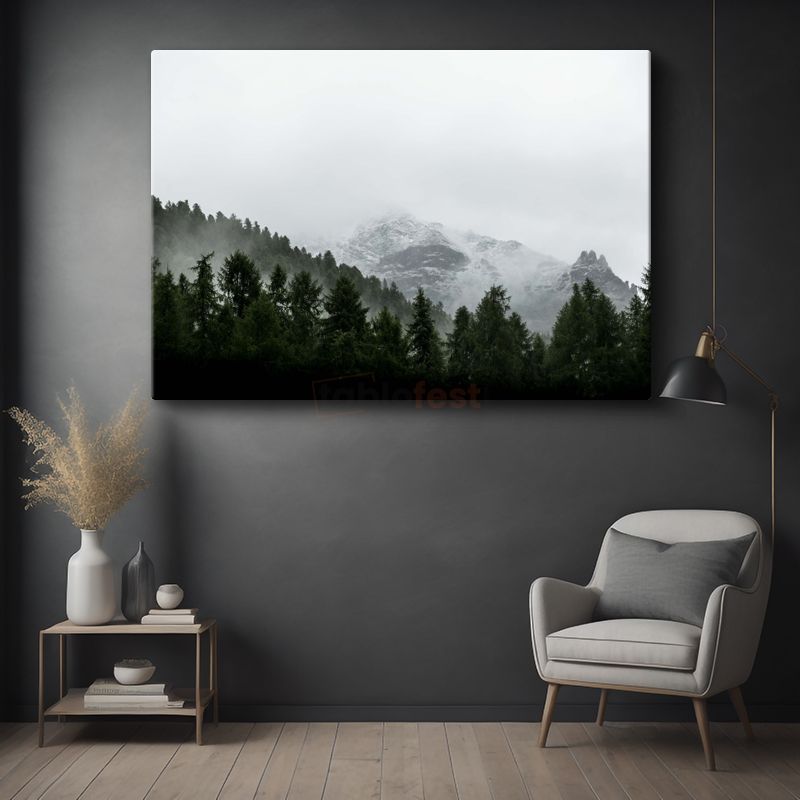 Sisli Orman - Karlı Dağ Zirvesi ve Çam Ağaçları Kanvas Tablo