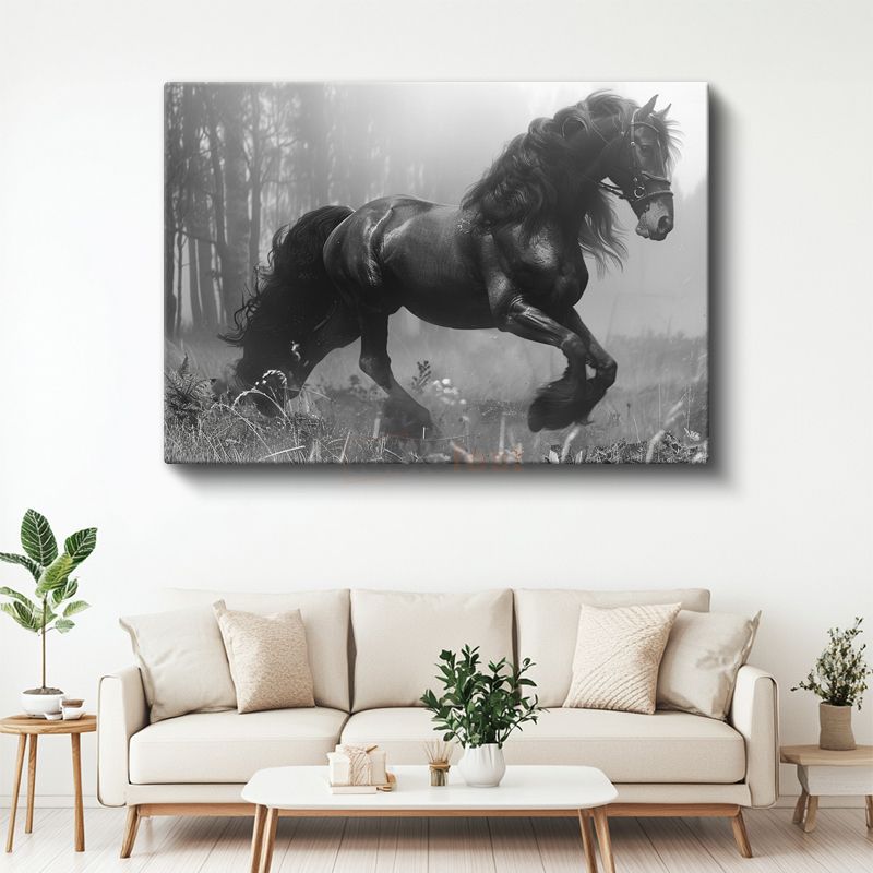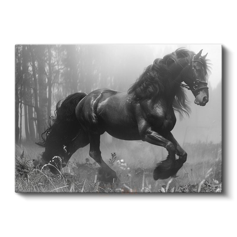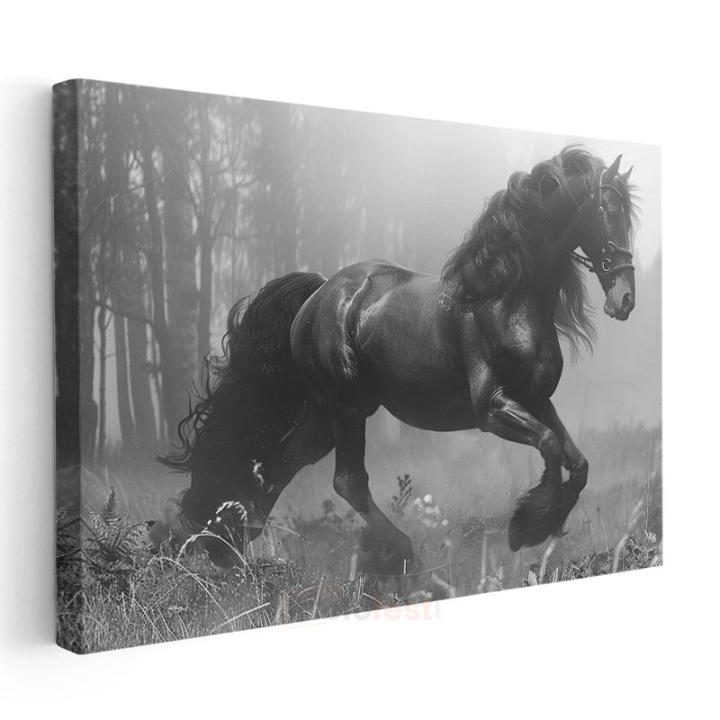 Sisli Orman - Şaha Kalkan Siyah Aygır Kanvas Tablo