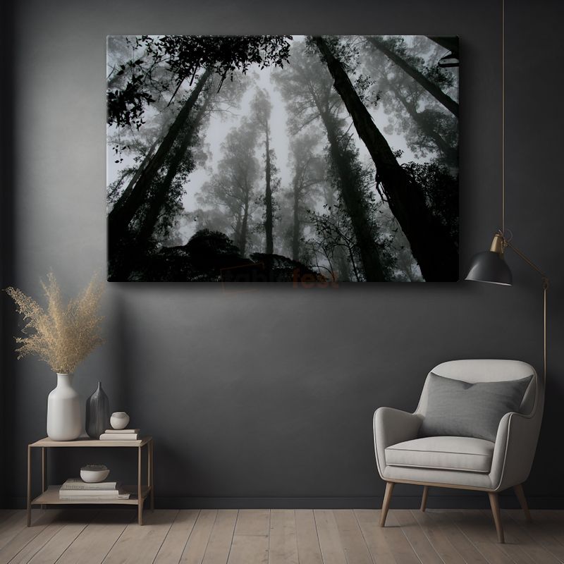 Sisli Orman - Yukarı Uzanan Ağaçların Gizemli Dünyası Kanvas Tablo