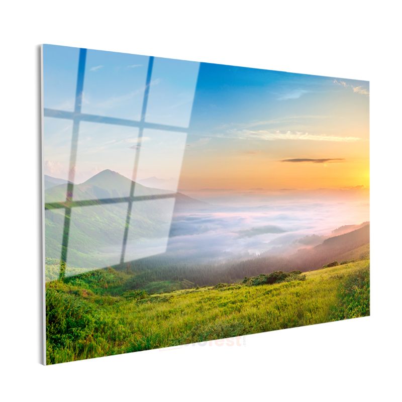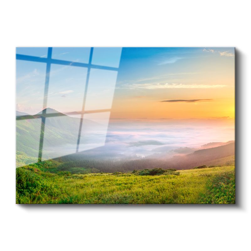 Sisli Vadi - Gün Doğumu ve Yeşil Tepeler Cam Tablo