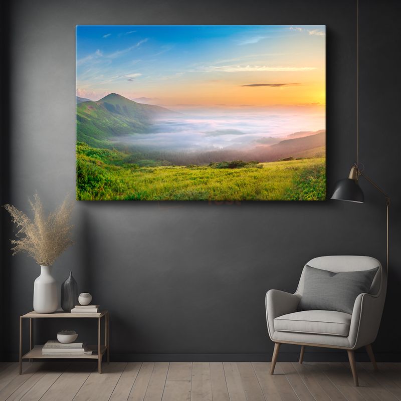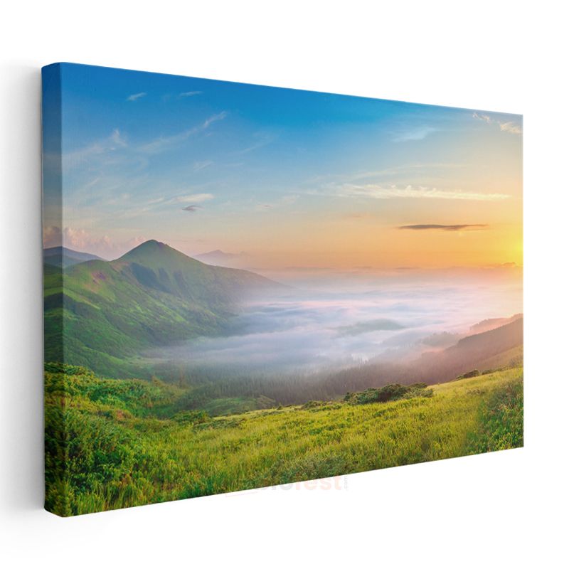 Sisli Vadi - Gün Doğumu ve Yeşil Tepeler Kanvas Tablo