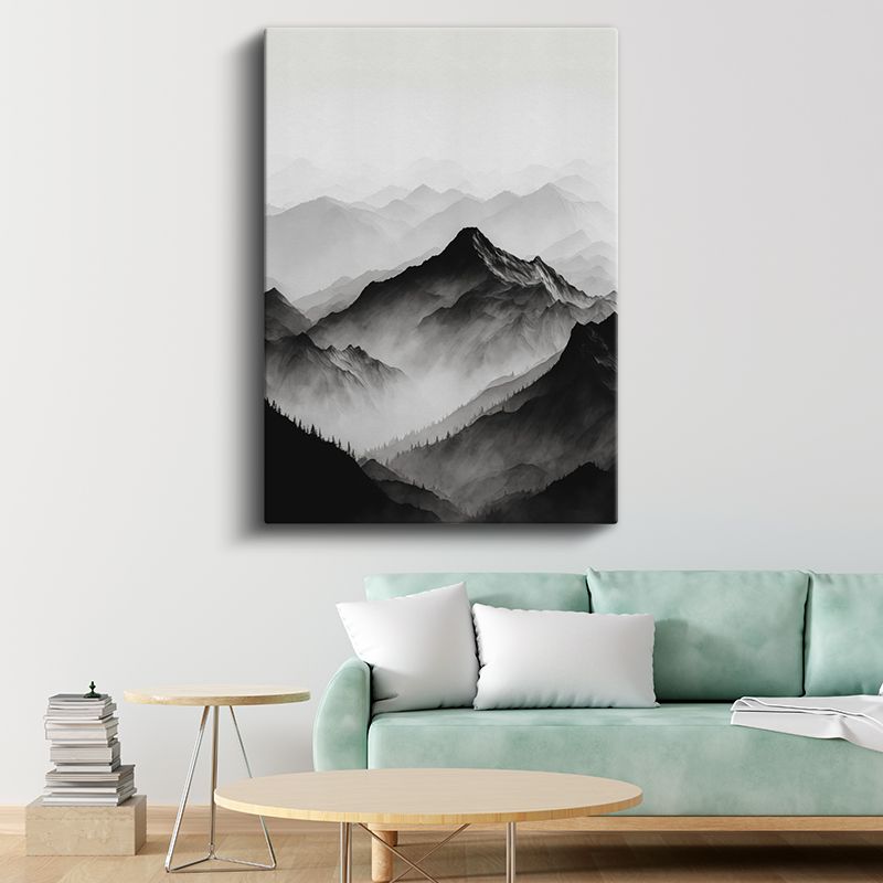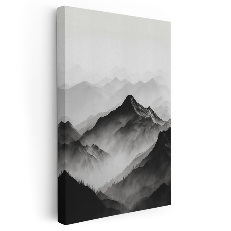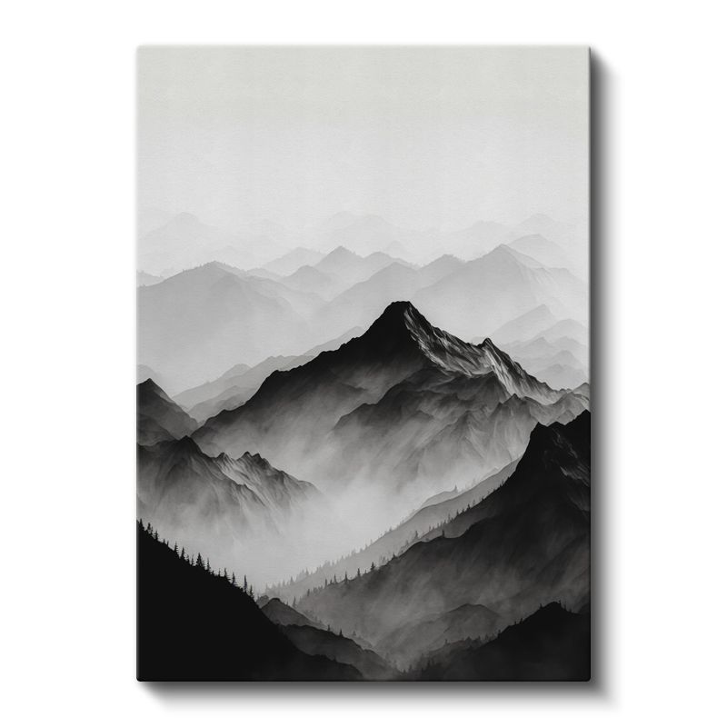 Sisli Zirve - Monokrom Dağ Silüeti Kanvas Tablo