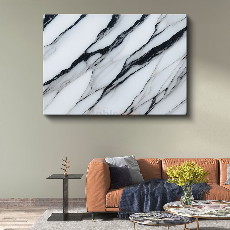 Siyah İzler - Minimal Mermer Deseni Kanvas Tablo