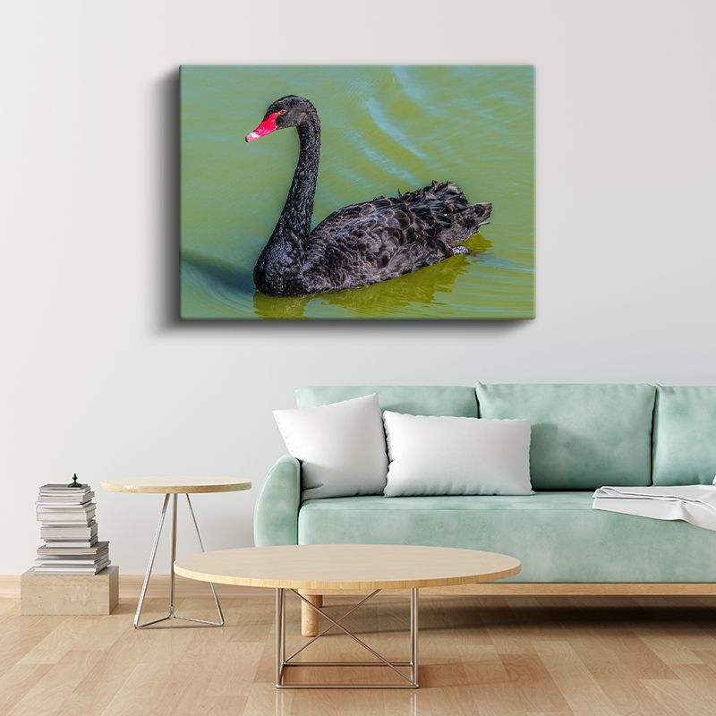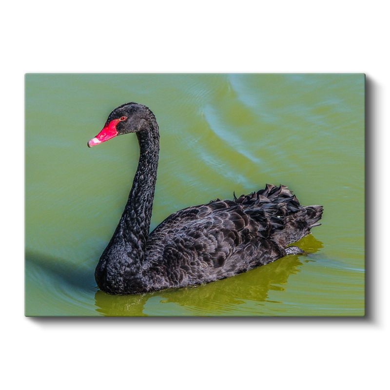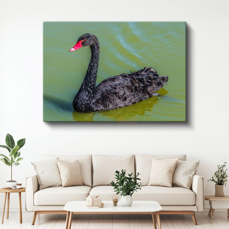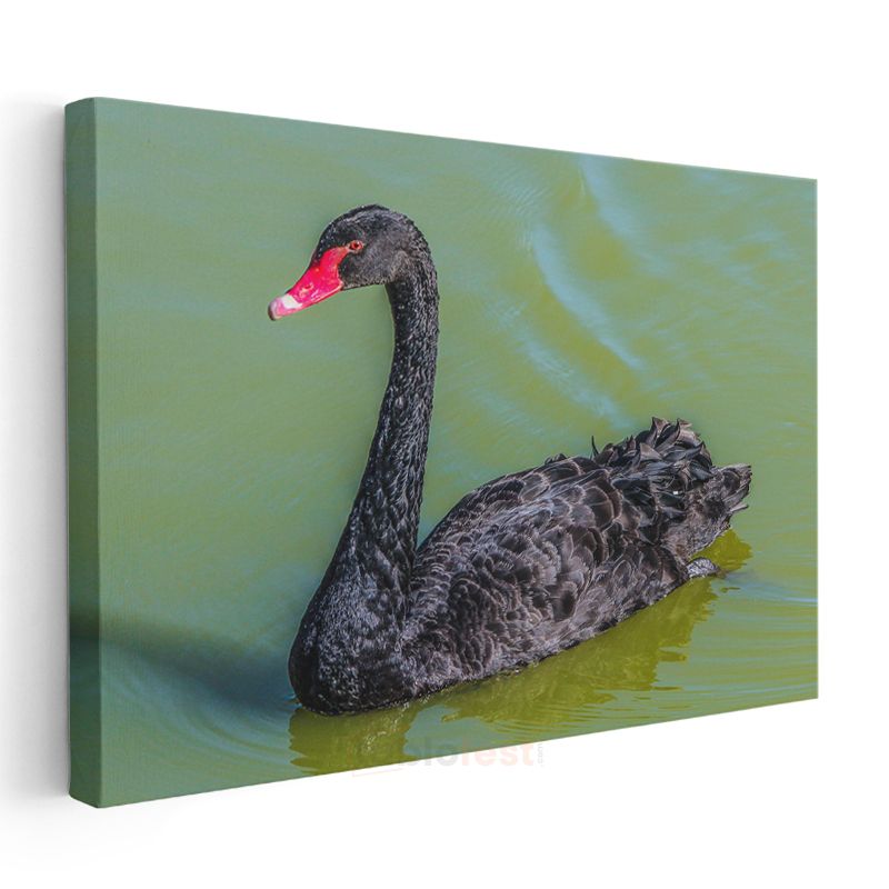 Siyah Kuğu - Yeşil Suda Zarif Yüzüş Kanvas Tablo