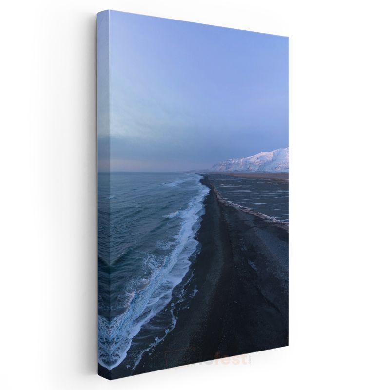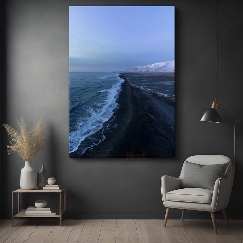 Siyah Kumsal - Mavi Dalgaların Kıyıya Vuran Huzurlu Ritmi Kanvas Tablo