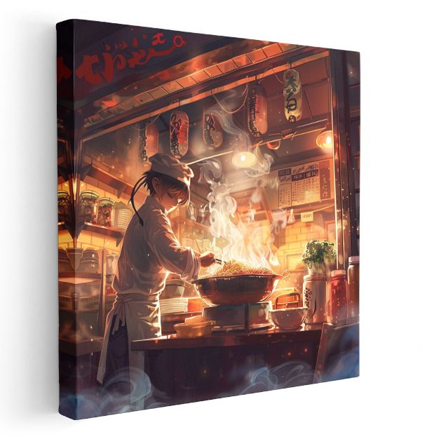 Sokak Yemeği - Alevli Wok Anime Kanvas Tablo