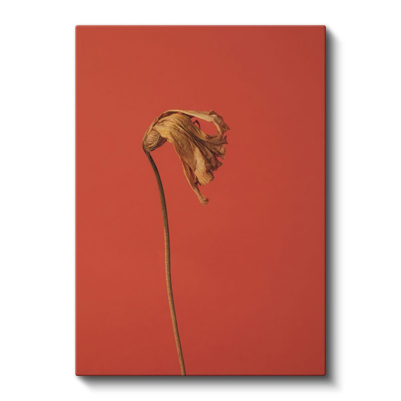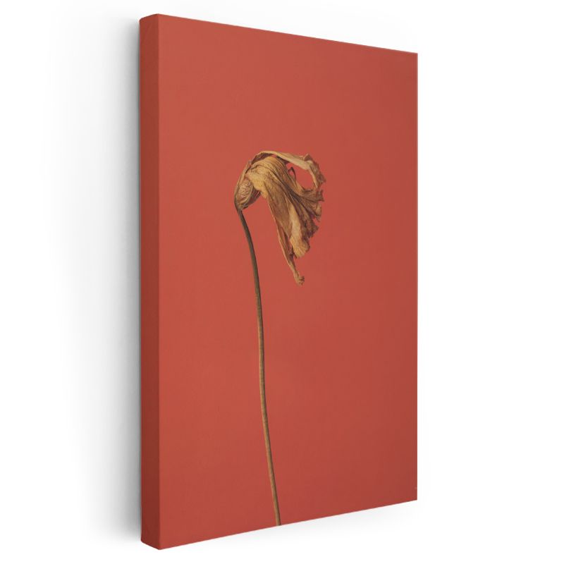 Solmuş Çiçek - Kırmızı Fonda Minimalist Botanik Kanvas Tablo