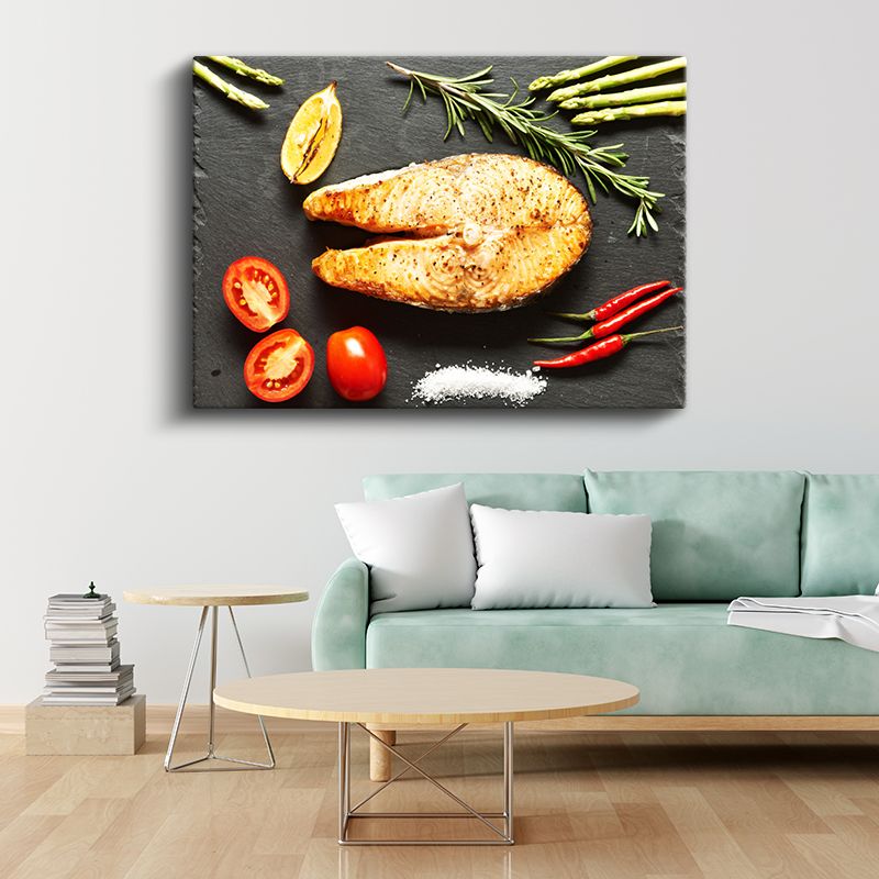 Somon Balığı - Baharatlı Deniz Mahsulü Kanvas Tablo