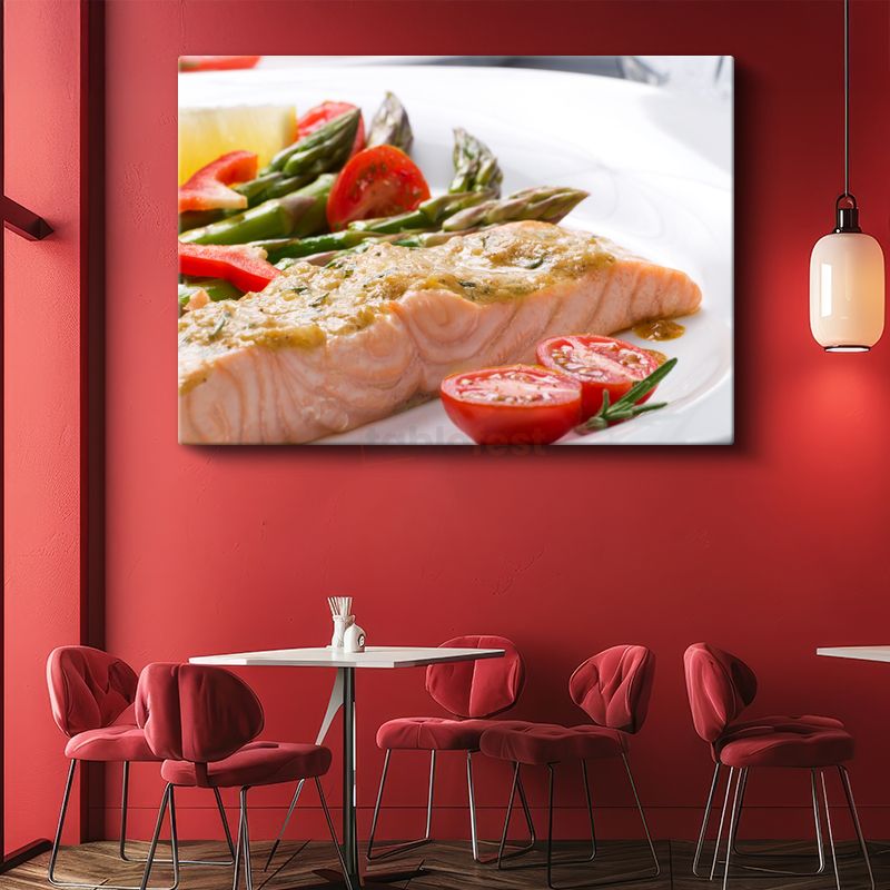 Somon Tabağı - Sebzelerle Zenginleştirilmiş Deniz Lezzeti Kanvas Tablo
