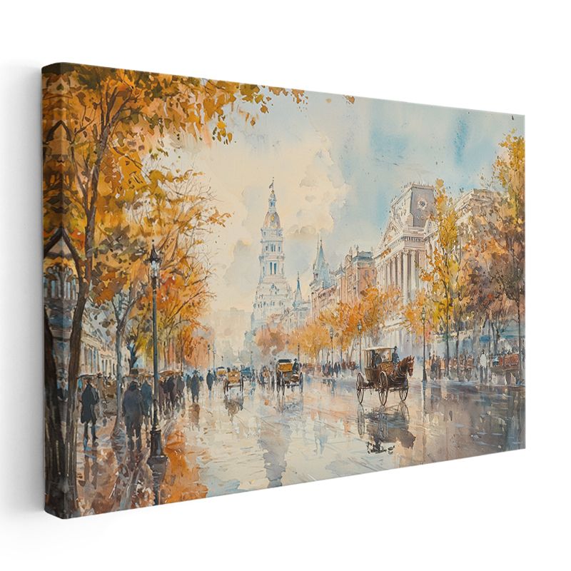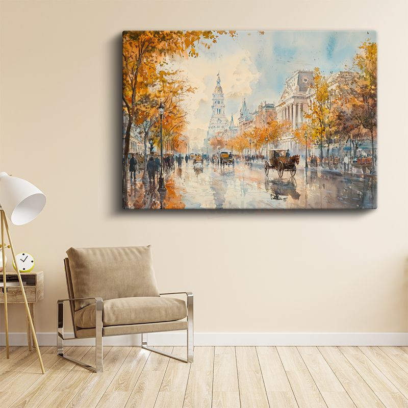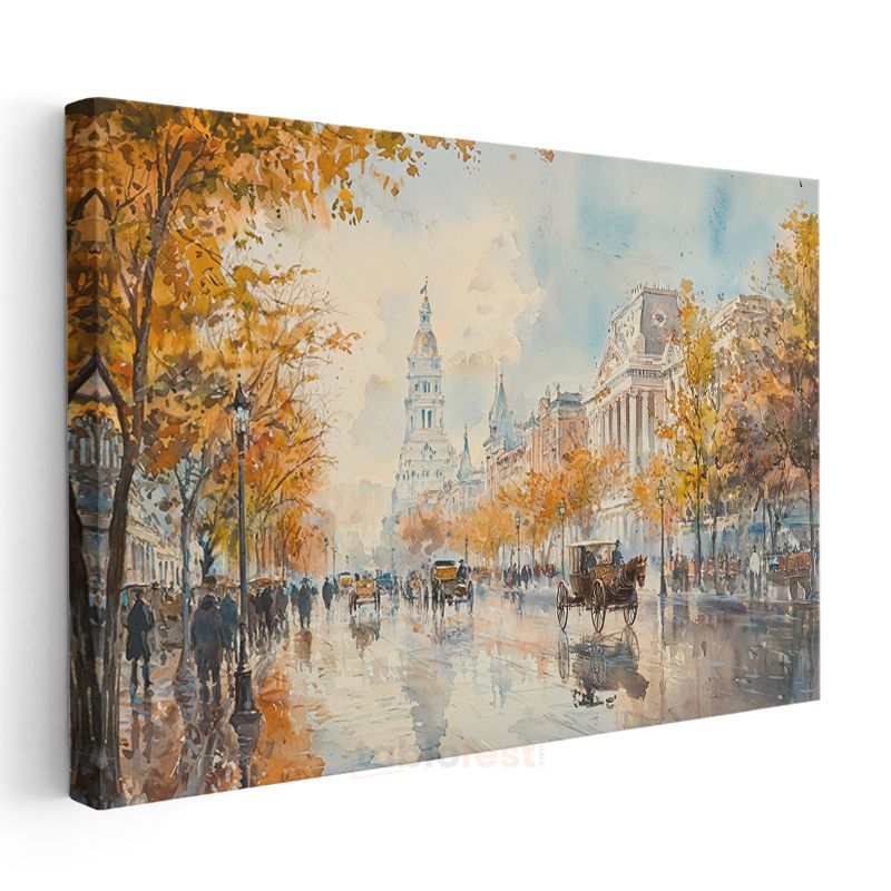 Sonbahar Bulvarı - Nostaljik Şehir Manzarası Kanvas Tablo