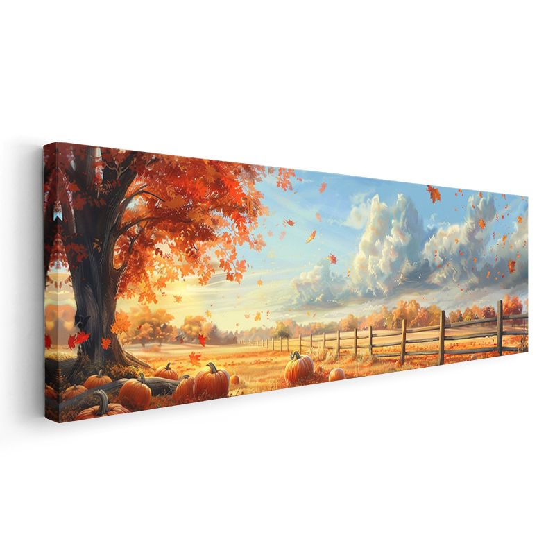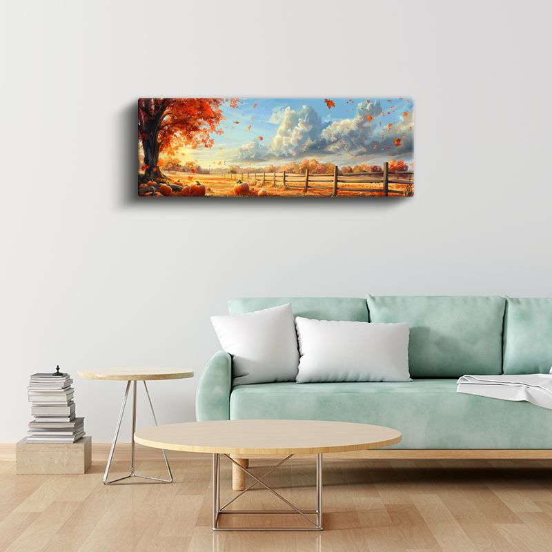 Sonbahar Çiftliği - Turuncu Yapraklar Kanvas Tablo