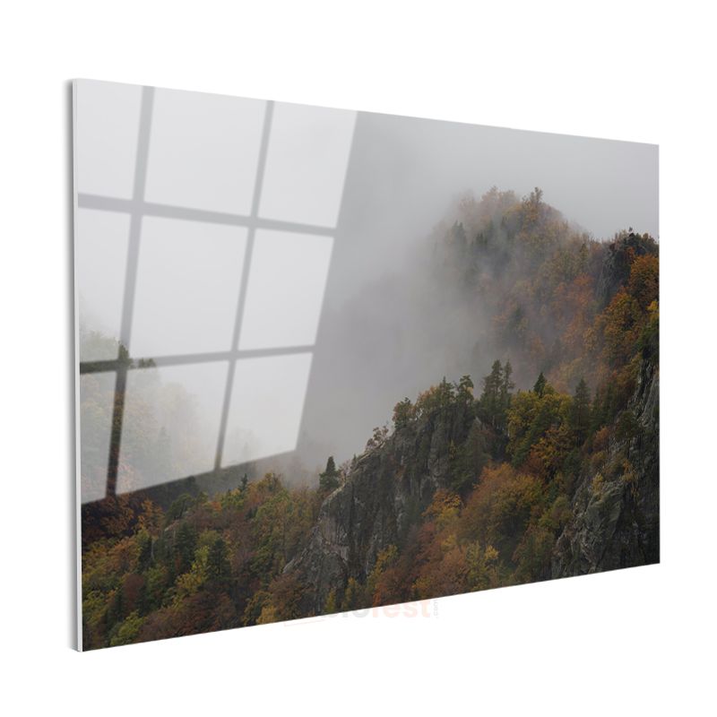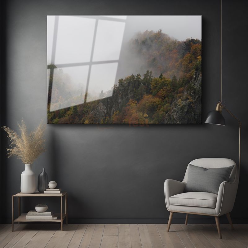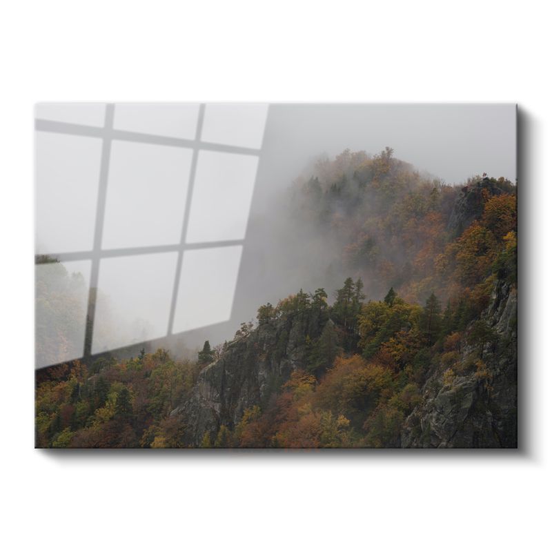 Sonbahar Dağları - Sis Perdesi Ardındaki Renkler Cam Tablo