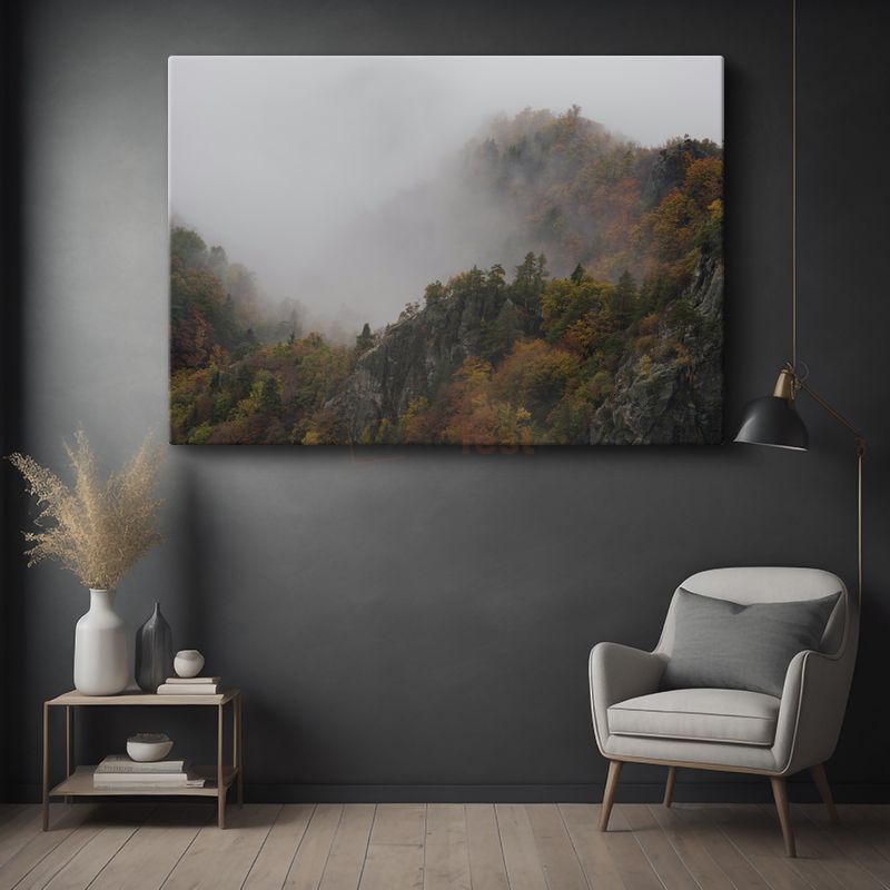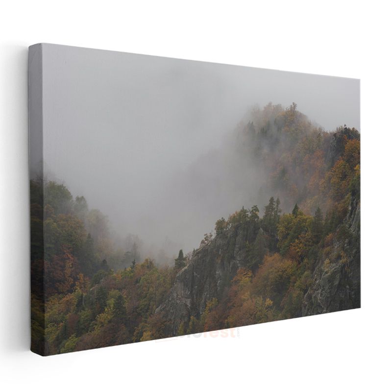 Sonbahar Dağları - Sis Perdesi Ardındaki Renkler Kanvas Tablo