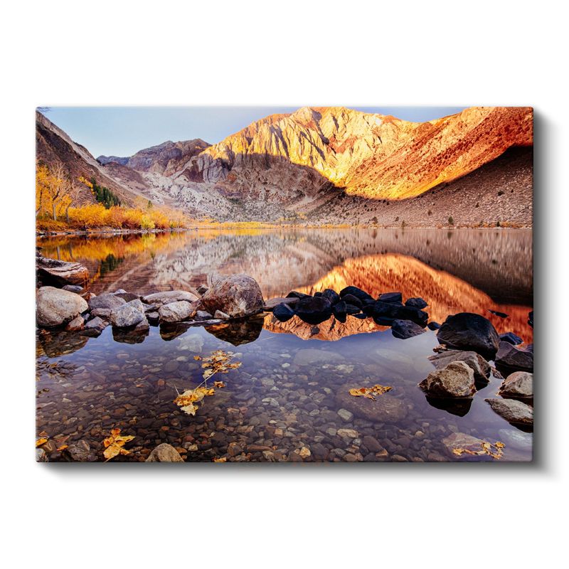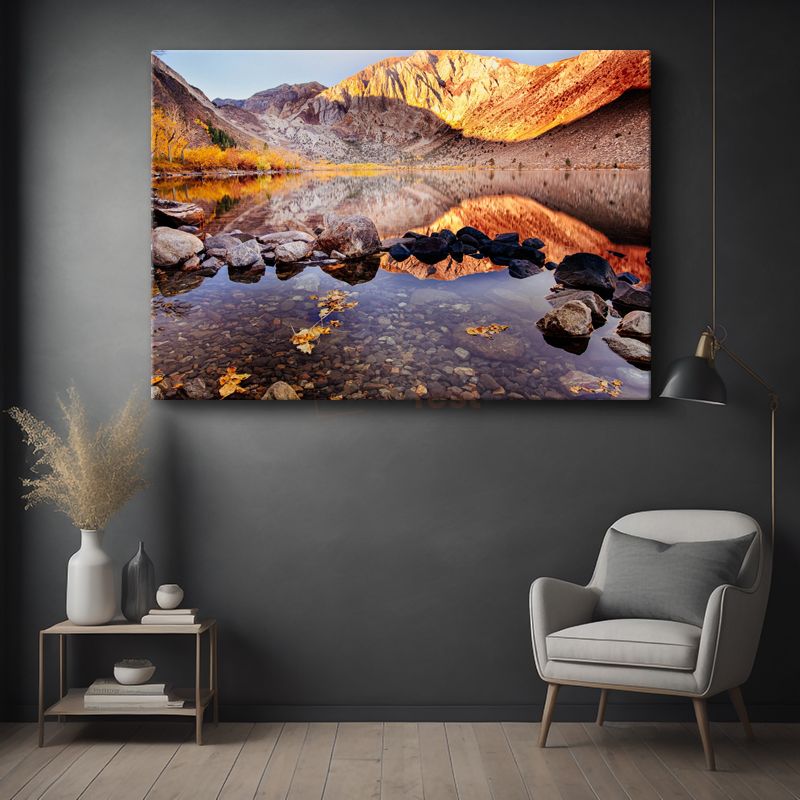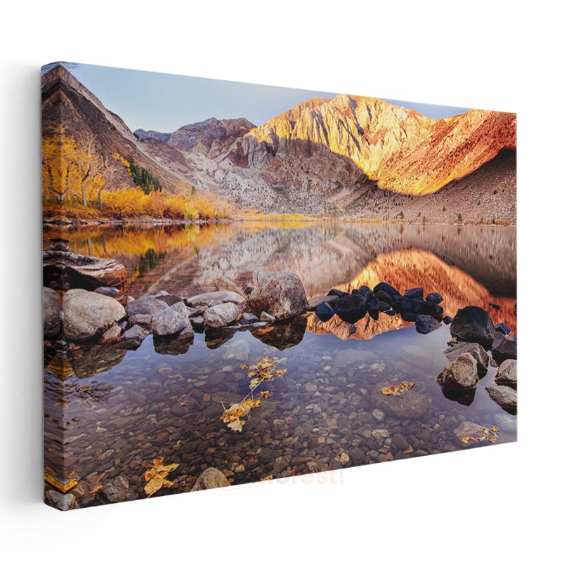 Sonbahar Gölü - Dağların Arasında Altın Yansımalar Kanvas Tablo