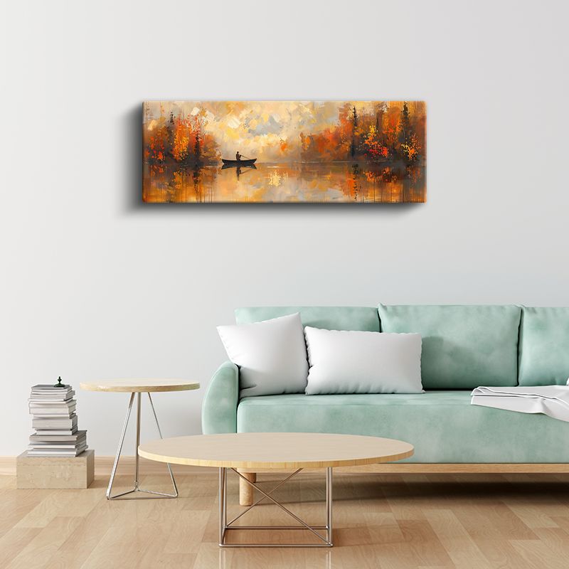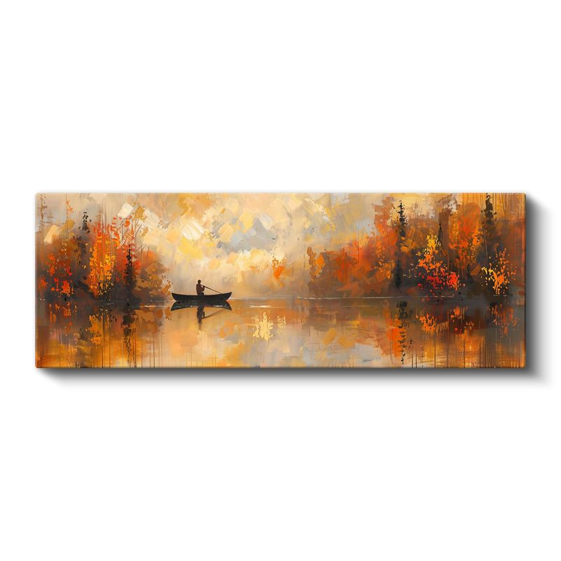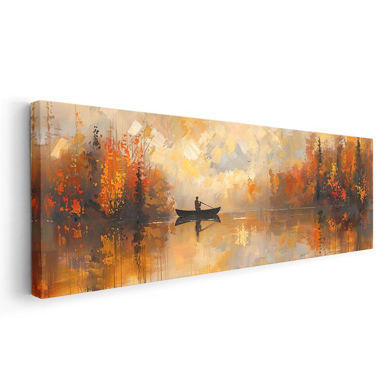 Sonbahar Gölü - Turuncu Tonlarda Balıkçı Manzarası Kanvas Tablo