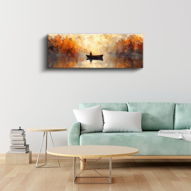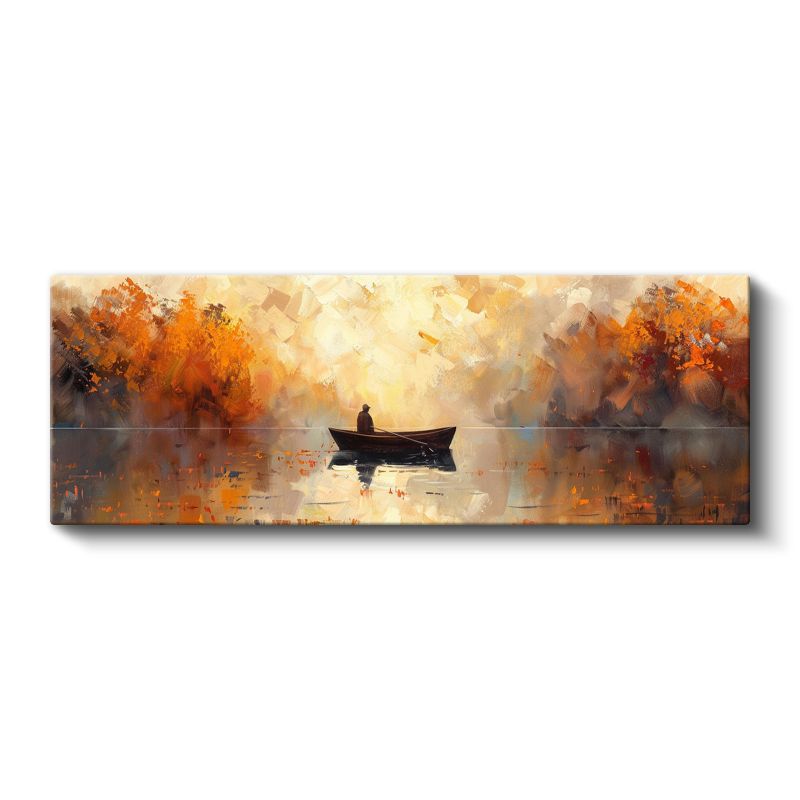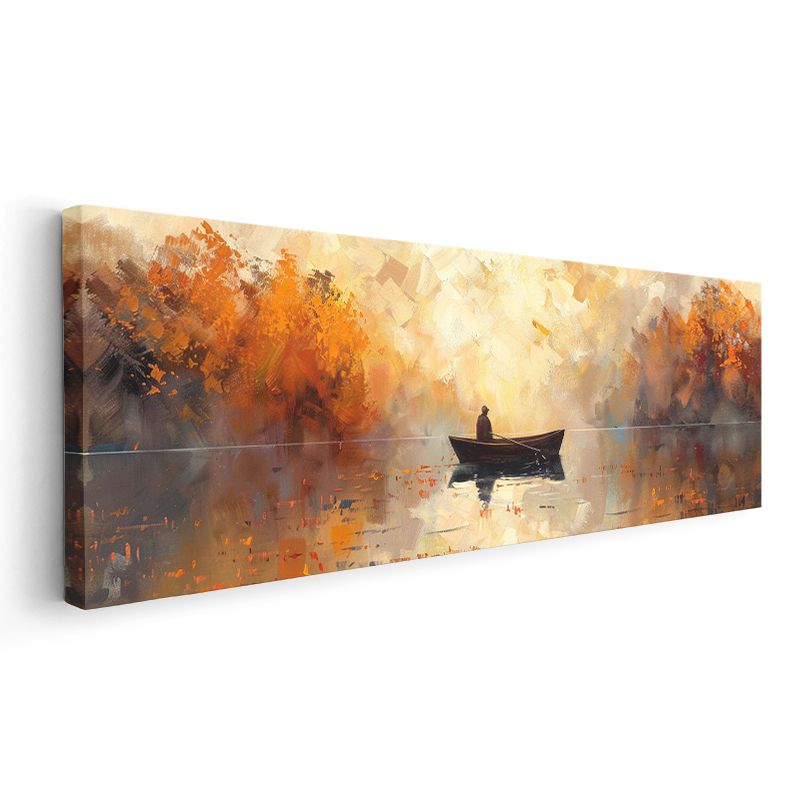Sonbahar Gölü - Yalnız Kayıkçı Kanvas Tablo