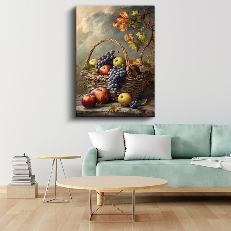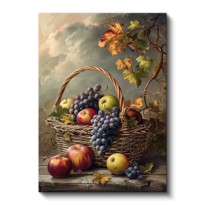 Sonbahar Hasadı - Klasik Meyve Sepeti Kompozisyonu Kanvas Tablo