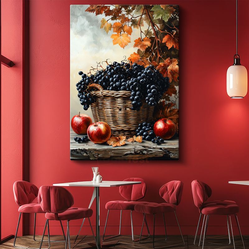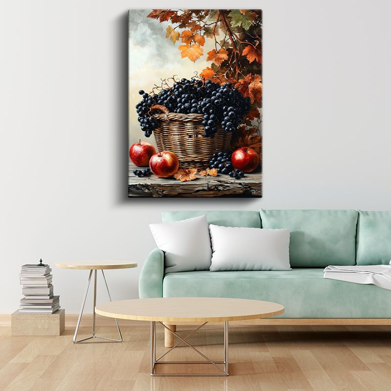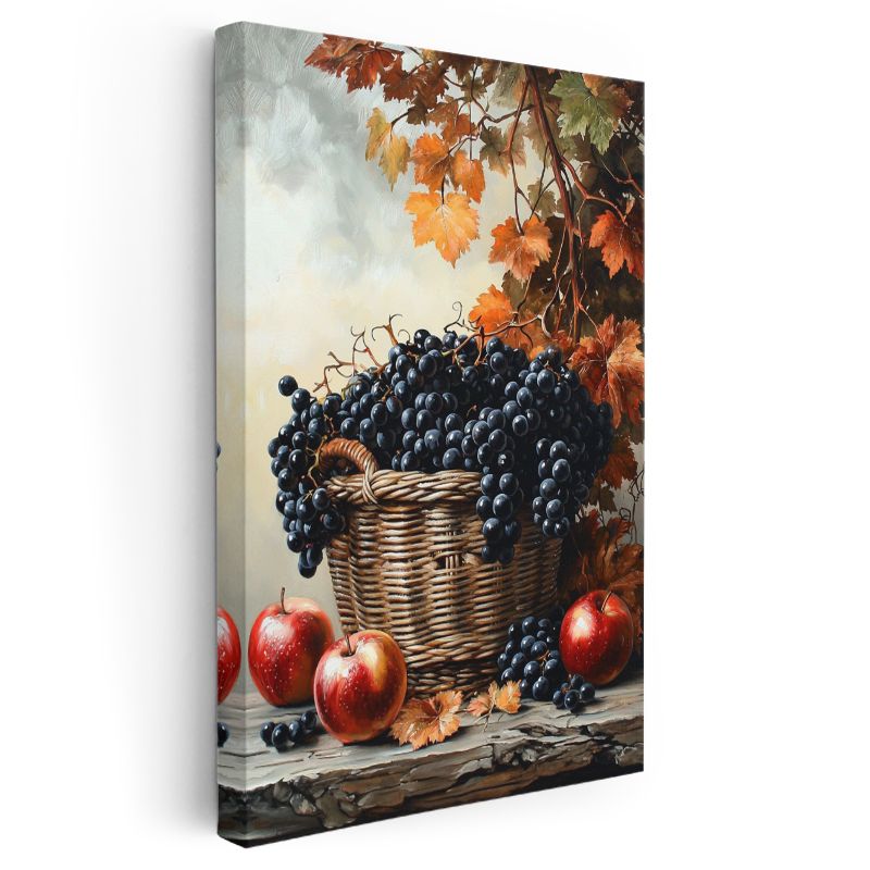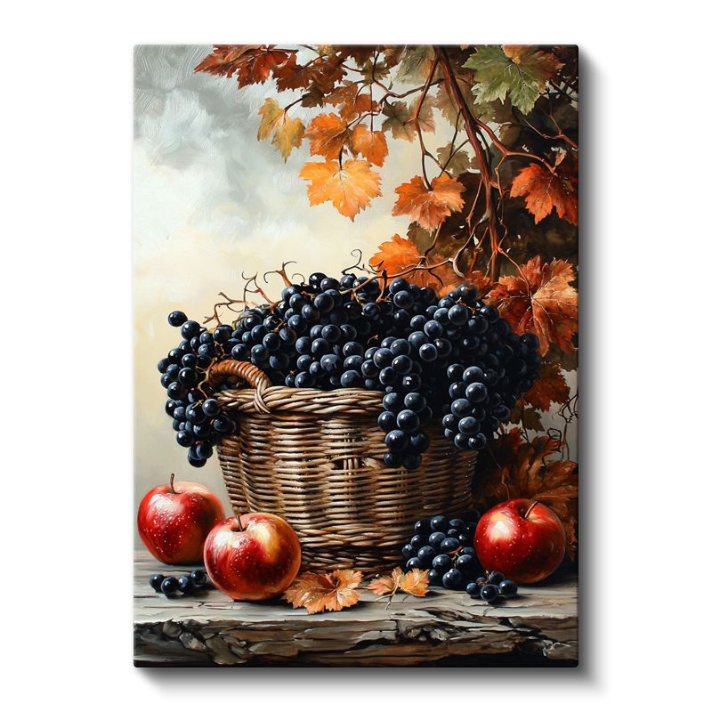 Sonbahar Hasadı - Sepette Üzüm ve Elmalar Kanvas Tablo
